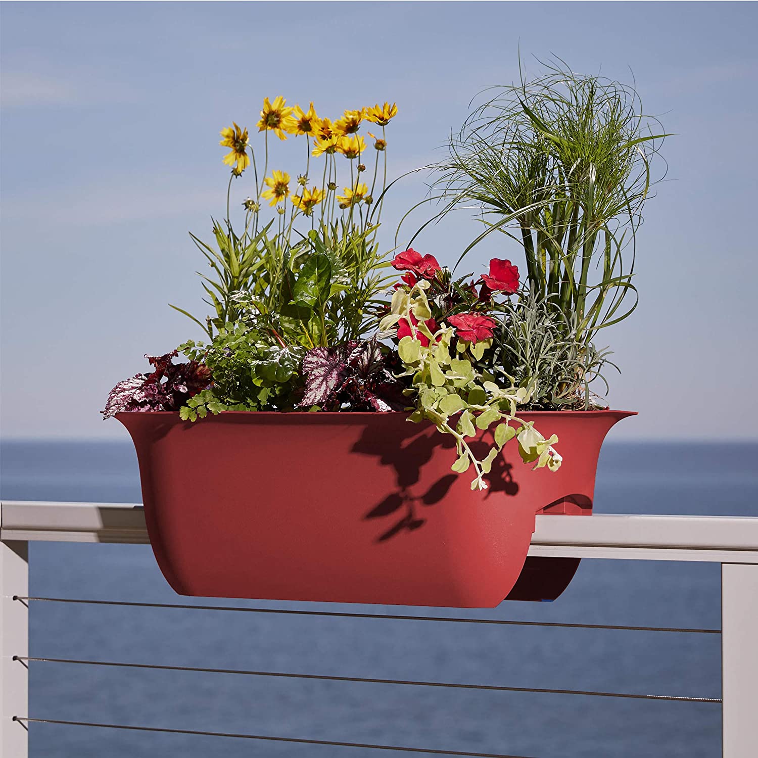 • Includes 1 - Bloem Modica Deck Rail Planter 24" Burnt Red