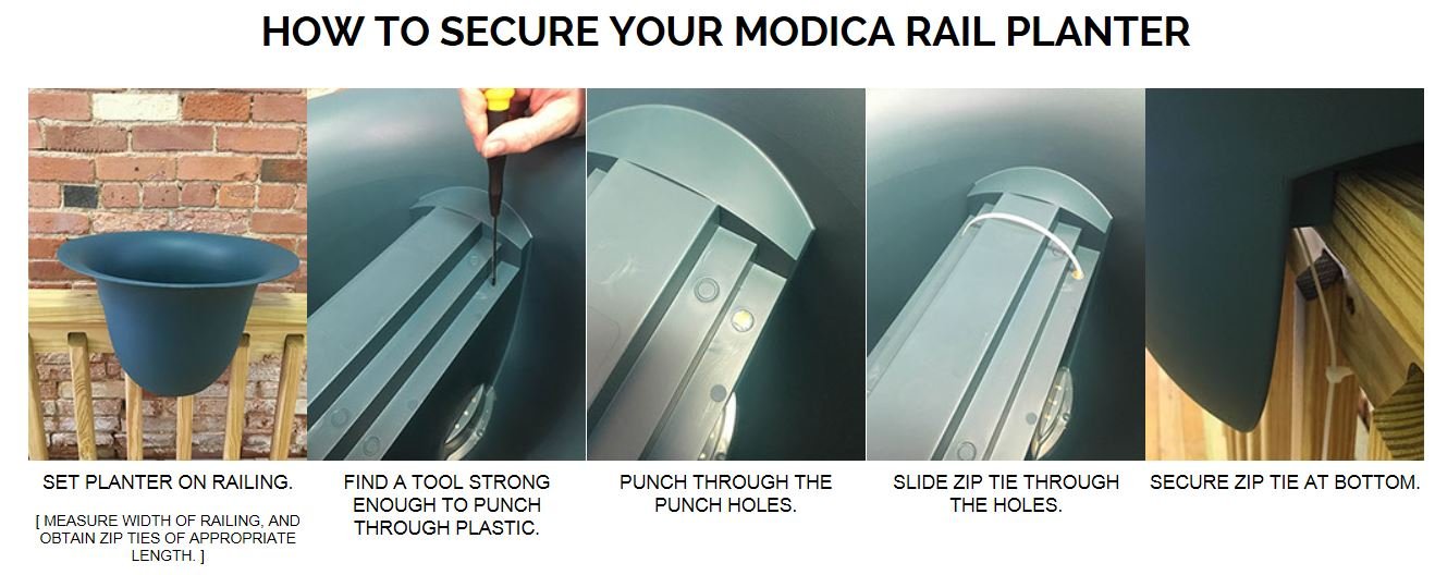 • Compression fit design ensures a secure fit on 2", 3.5", and 5.5" up to 6.5" width rails. For smaller rails we recommend securing with zip ties underneath planter for added stability.