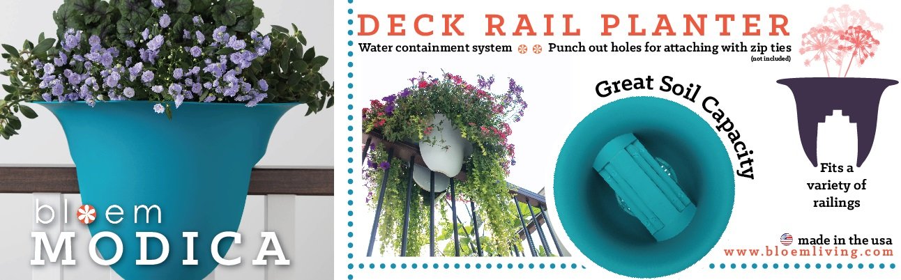 • Includes 1 - Bloem Modica Deck Rail Planter 18" White