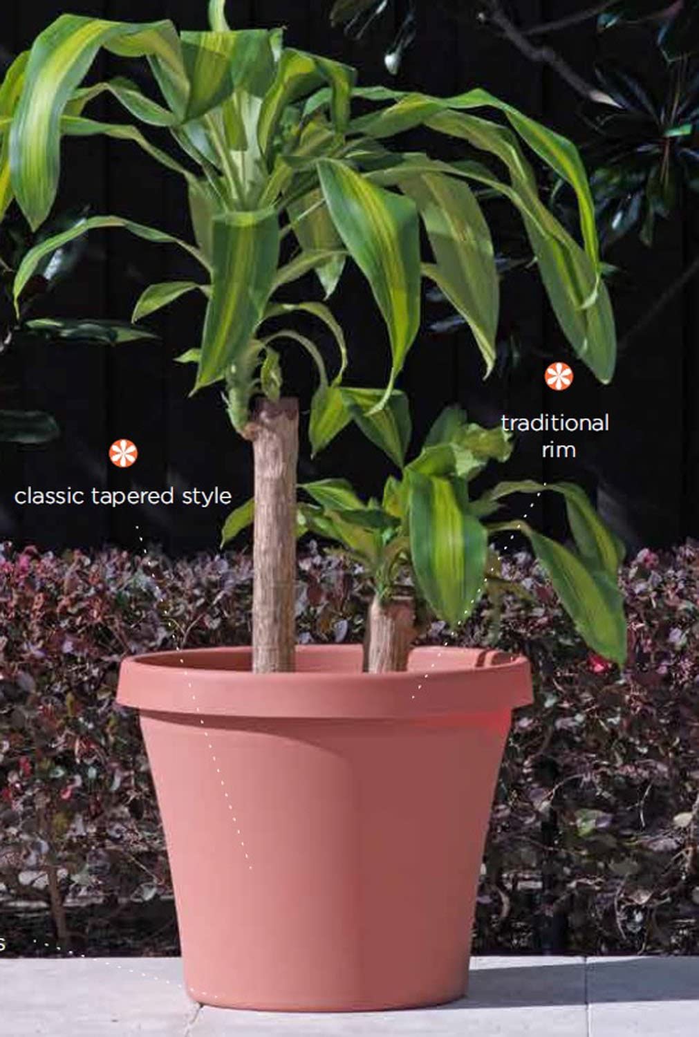 - Natural clay texture. All-weather resin durability with UV protection.