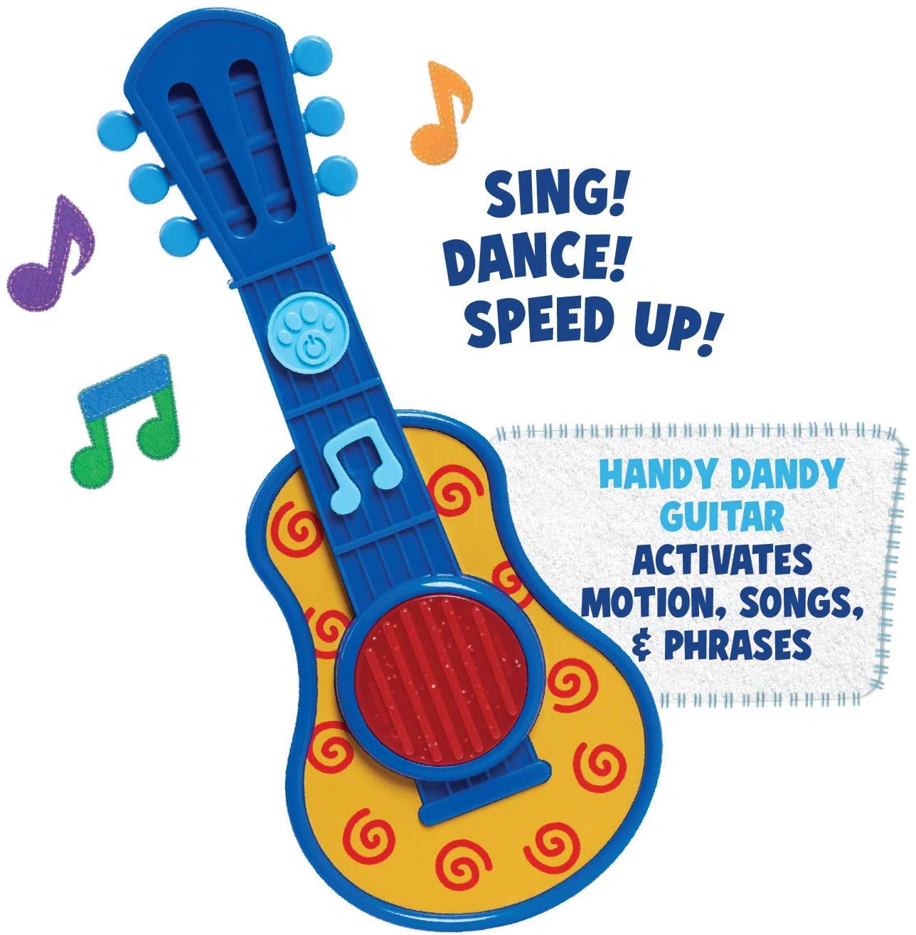 • Press the buttons on the Handy Dandy Guitar to activate music and phrases from the show, as well as the dancing.