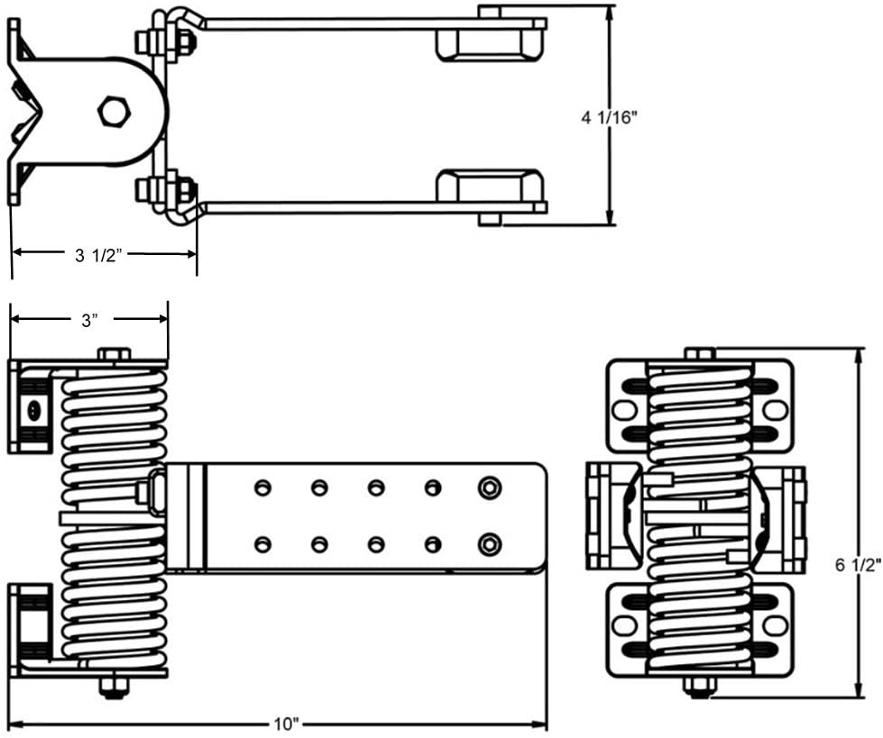 - Kit includes 1 self-closing device, 4 - 1 1/2" hex head self-drilling lag screws, and 1 allen wrench.