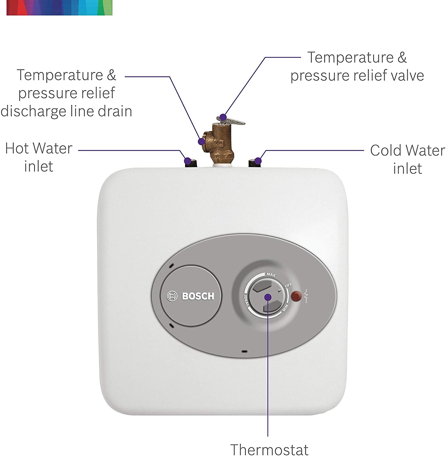 Get hot water where it's needed, when it's needed with the Bosch ES4 Tronic 3000 T Electric water heater. This 2.5-gallon capacity point-of-use mini-tank fits right under your sink and provides a practical and effective solution to your hot water needs. This smaller model can be plugged right into a 120-volt outlet with the 36-37" cord, or can be installed in-line with a larger hot water source to provide "on-demand" use. The glass-lined tank offers great insulation and added durability, while the heater's fast recovery rate eliminates long waits for hot water. An external dial allows you to easily control the temperature range, and the temperature-and-pressure relief valve enhances your safety. The ES4 Tronic 3000 T from Bosch has a sleek and attractive exterior design that blends in seamlessly with existing décor when installed in a visible location, making this heater a great option in any room.