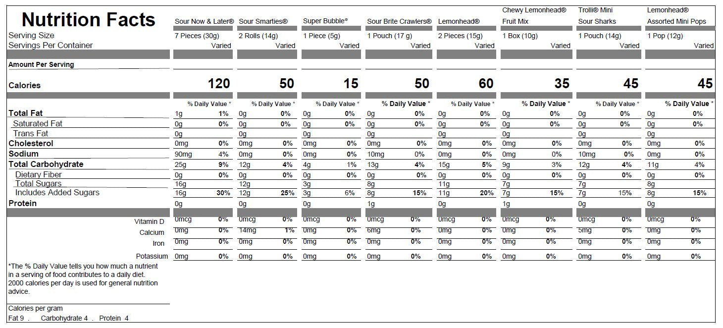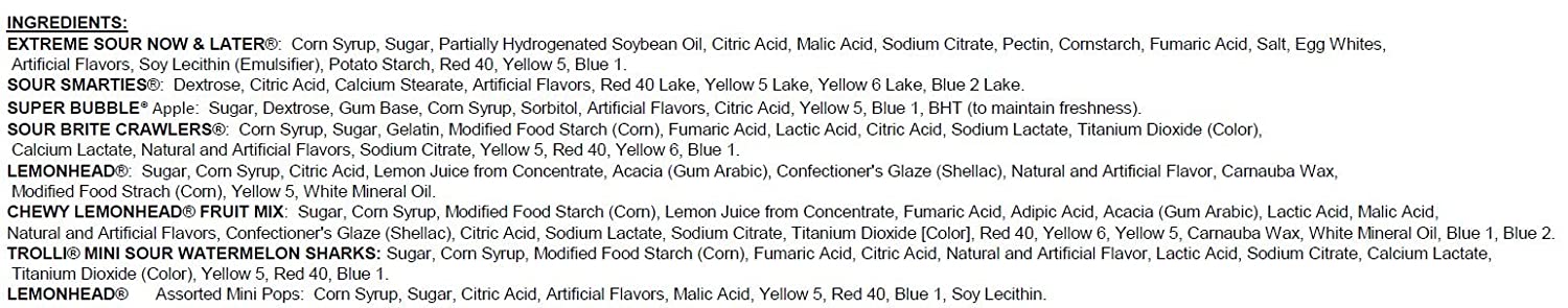 - Brach's Sourlicious Mix includes Sour Lemonhead Mini Pops, Trolli Sour Brite Crawlers Minis, Super Bubble, Lemonhead, Chewy Lemonhead, Now and Later Extreme Sour and Trolli Sour Watermelon Sharks Minis