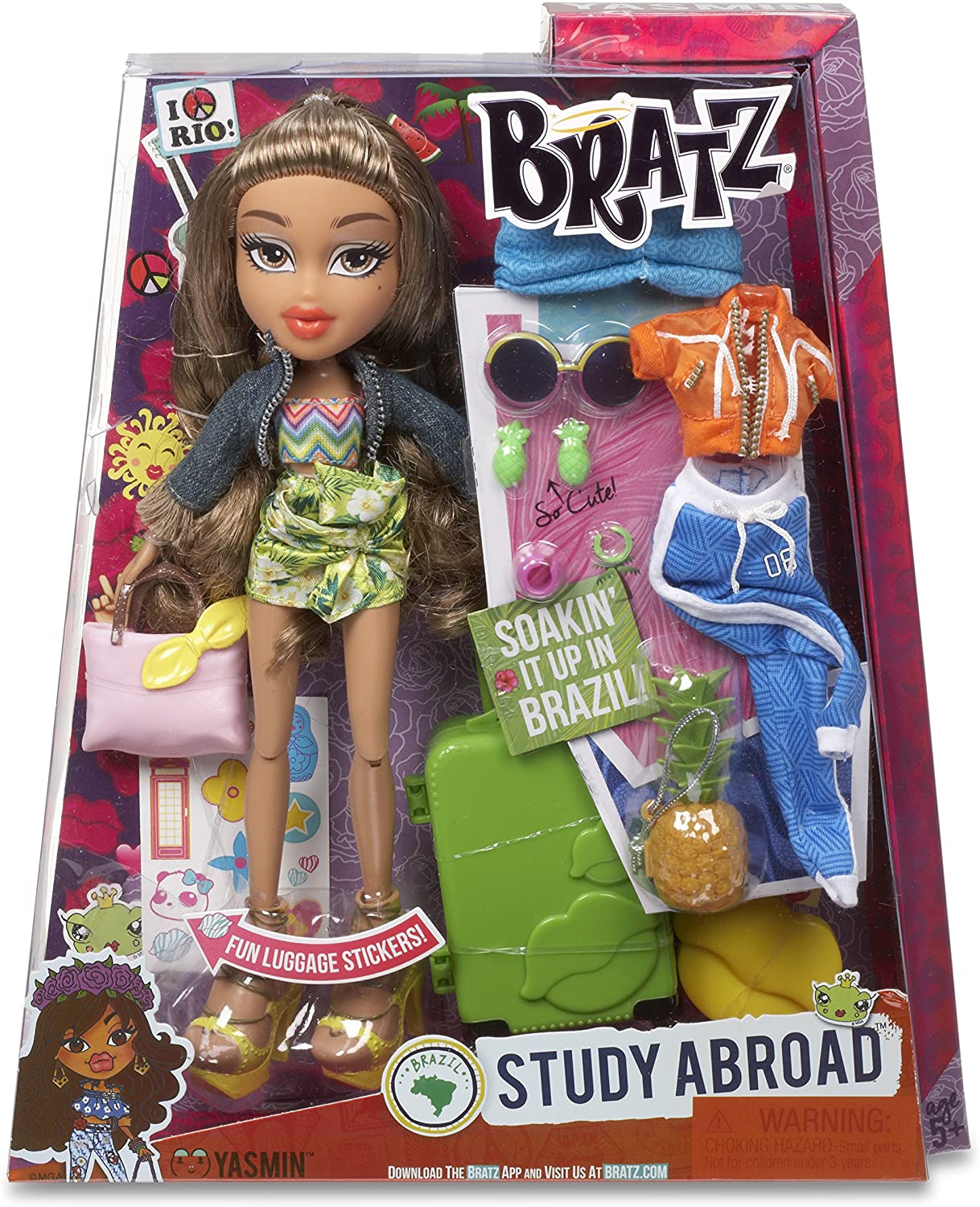 - Bratz Study Abroad Doll Yasmin is back from Brazil in an colorful crop top, zip-up denim jacket with fringed sleeves, and a tropical satin skirt