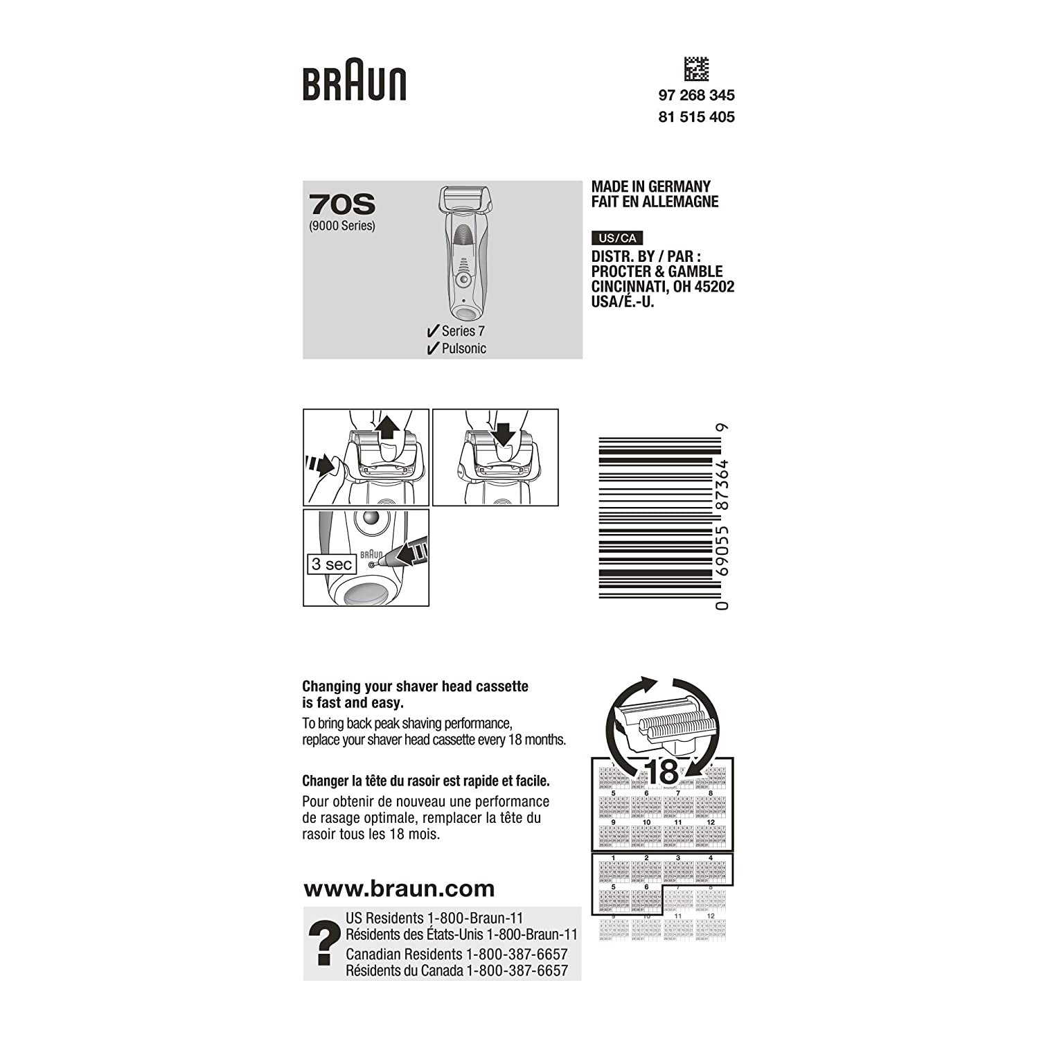 Get your shaver back to 100% performance with the Braun Series 7 70s replacement head. Braun recommends changing your shaver’s blades every 18 months to maximize shaving performance and comfort. With this shaver head you will get back to the superior close shave you have come to expect from Braun. Get more details on razor heads at www.braun.com.