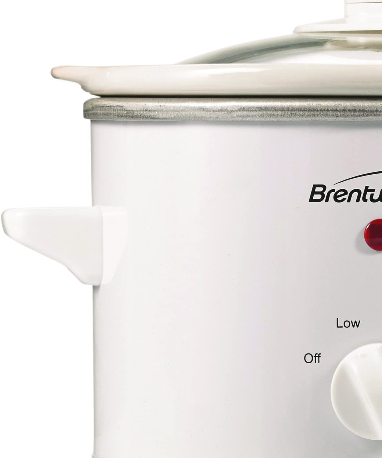 Use the powerful 120w Brentwood SC-115W 1.5 Quart Slow Cooker to make delicious home cooked meals while you go on with your day. Set it, forget it and have dinner ready for 2 to 3 people by the time you get home from your daily activities. Choose between 3 heat settings: low, high and auto. Dishwasher safe ceramic bowl and glass lid are removable for easy serving and storage in the refrigerator. Body is made from metal for long term durability. Cool touch handles make handling safe and simple. Power indicator lights signal when the unit is powered on.