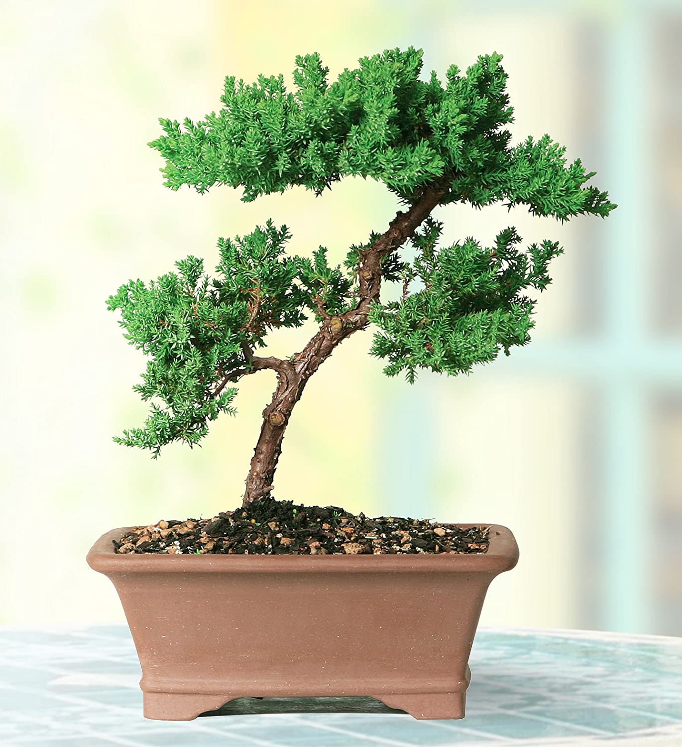 Considered a very hardy conifer, the Juniper is a non-flowering tree that makes a great choice for bonsai because of it is so easy to prune and train. Originating from China, it is one of the most popular types of bonsai trees and is a firm favorite of many bonsai enthusiasts. The Juniper is a low growing plant, producing lush greenery and small, firm, silvery blue berries atop interesting bark that adapts well to several creative forms of Bonsai bark manipulation. This type of tree offers the choice of being able to grow it indoors or outdoors. Its compact foliage makes it one of the best candidates to become a Bonsai. Junipers grow slowly and are very long-lived. This Juniper will grow with outstanding beauty, remaining green throughout the year.