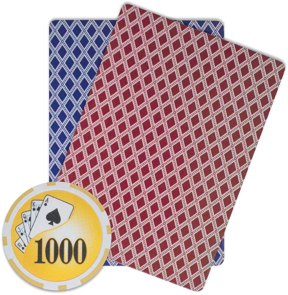These heavyweight clay composite poker chips are great for cash and tournament games alike, for casual players and high rollers. Available in 10 denominations ranging from $1 to $10,000, the richly-colored inlay art features four aces with large, easy-to-read denominations, and the clay’s grippy texture makes stacking these chips a breeze.