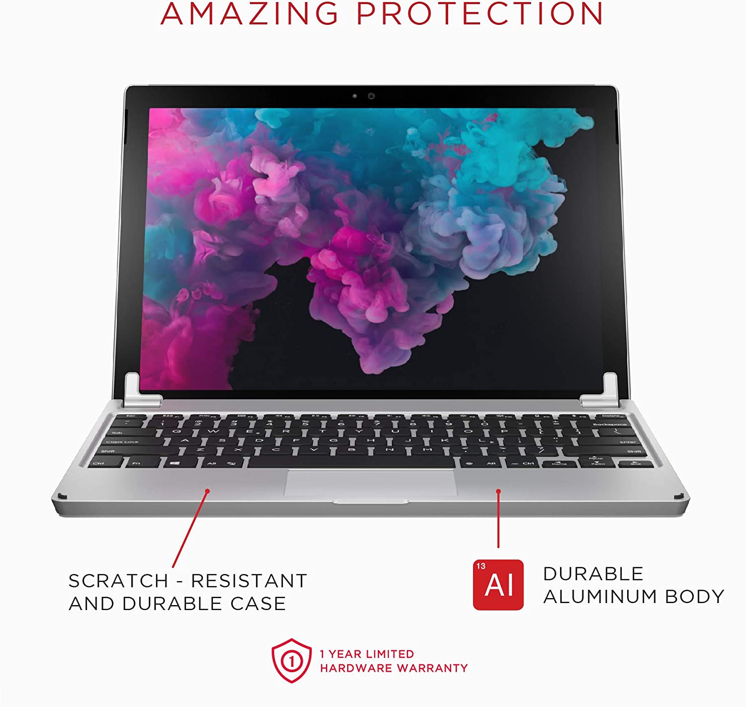 • AWARD WINNING WIRELESS KEYBOARD | We design technology related products that serve as a "bridge" between you and you goals. The Bryde 12.3 for Microsoft Surface Pro 4, 5, and 6 is focused on simplicity and rugged reliability. Engineered from high-strength aluminum for maximum protection and state of the art design.