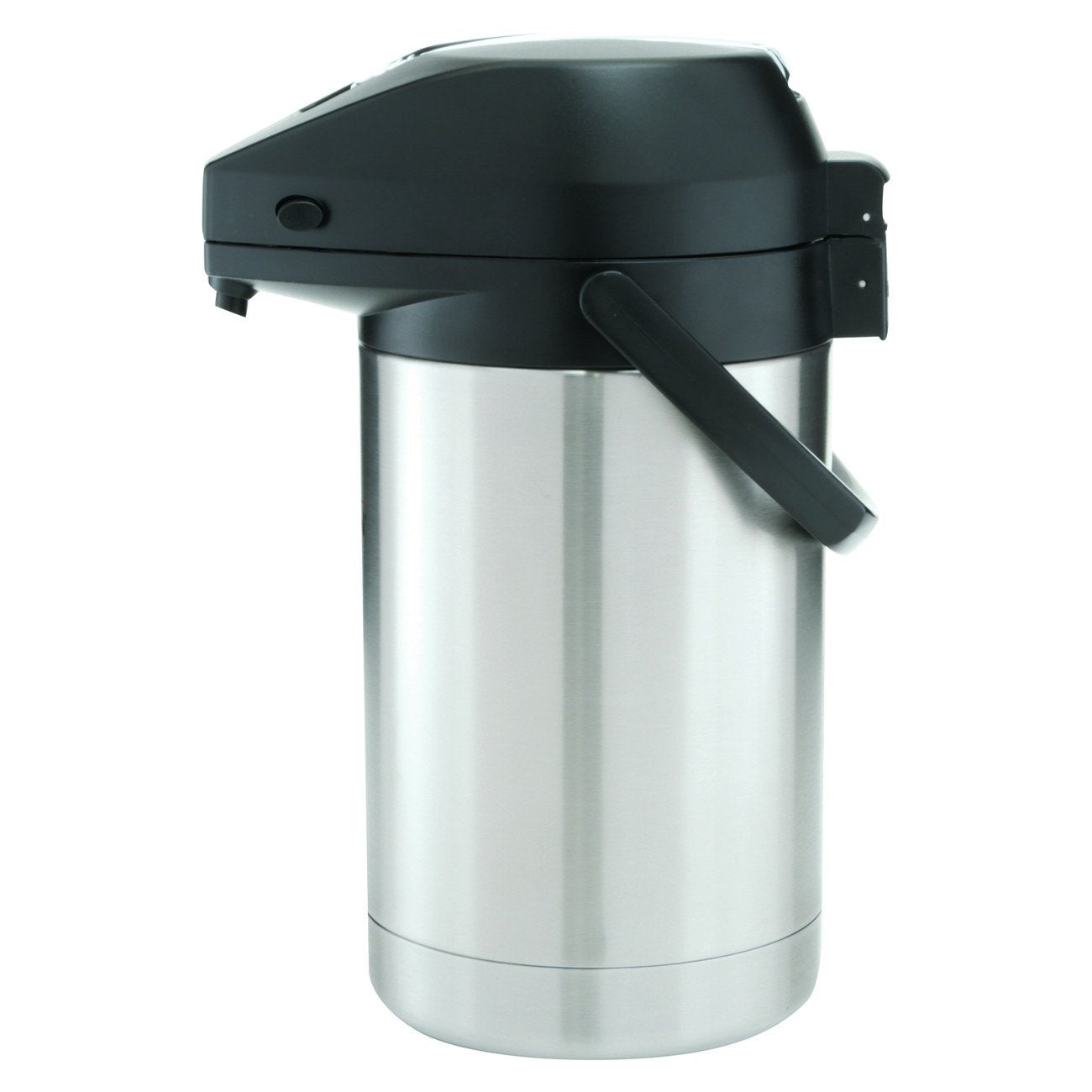 The BUNN 32125.0000 2.5 Liter Lever-Action Airpot in Stainless Steel ensures hot coffee for hours. With a brew-through insert and lever action for easy use, the airpot can hold up to 84-ounces (2.5 liters).