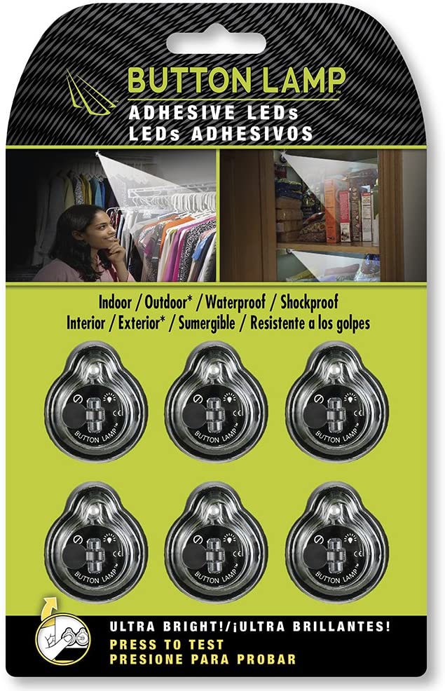 Includes 1 6-Pack Of Button Lamp Adhesive Led Lights. Lightweight, Ultra Small, Ultra Bright Led Utility Lights. These mini Led button lights Have All The Power Of A Regular Lamp, But In A Really Tiny, Economical LED Package. Button Lamps Are Convenient To Have Whenever You Need To Light Up Small Dark Spaces. Stick Them Under A Shelf, Kitchen Cabinets, In A Closet Or Tight Space, Or Put One In Your Toolbox. Perfect To Have Around For Emergencies, Power Outages, Camping Trips, Etc. Comes In Handy 6-Pack So You Can Keep One In Your, House, Car, Truck, Boat Or Camper - Or Give One Away To A Friend. These mini sticky LED lights are shockproof and waterproof that can be used outside or inside. They Come With Adhesive Disc For Quick Installation so you can have LED light wherever you need it. Batteries Included. Specifications: Number Of LEDs Per Light: 1. Light Output: 13 Lumens. Battery Type / Quantity: Cr2032 / 2. Battery Life: Over 17 Hours. Made By Panther Vision. Model Number: Bl-6885. Upc Code: 811465006885. Warning: Choking Hazard. Small Parts. Not For Children Under 3 Years Old.
