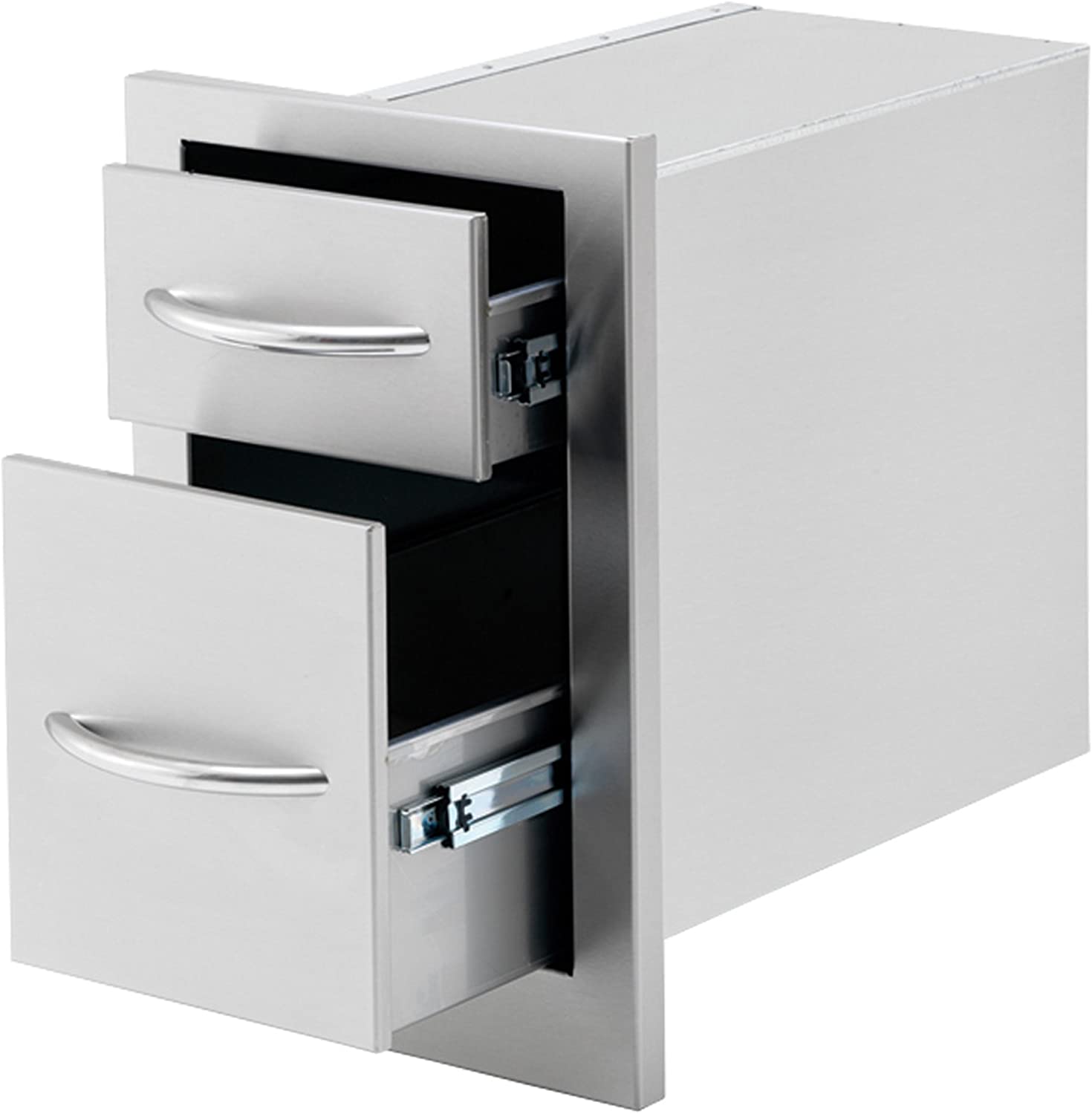 - Extra large handle, this 2-drawer storage set offers a convenient way to store oversized grilling tools