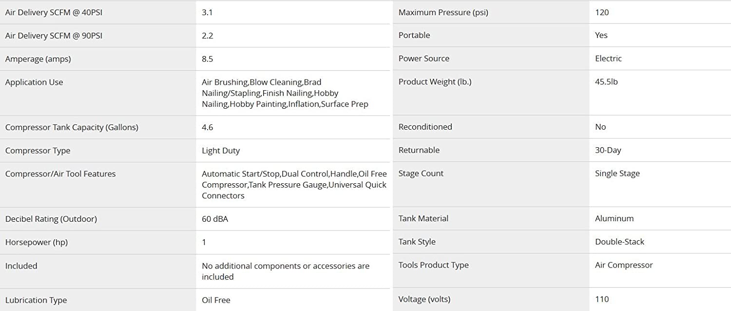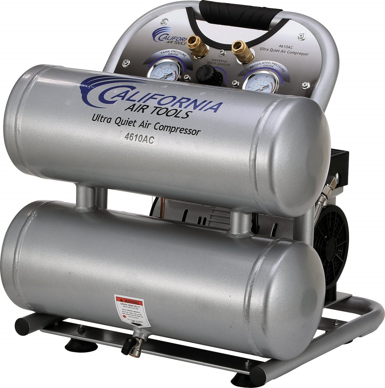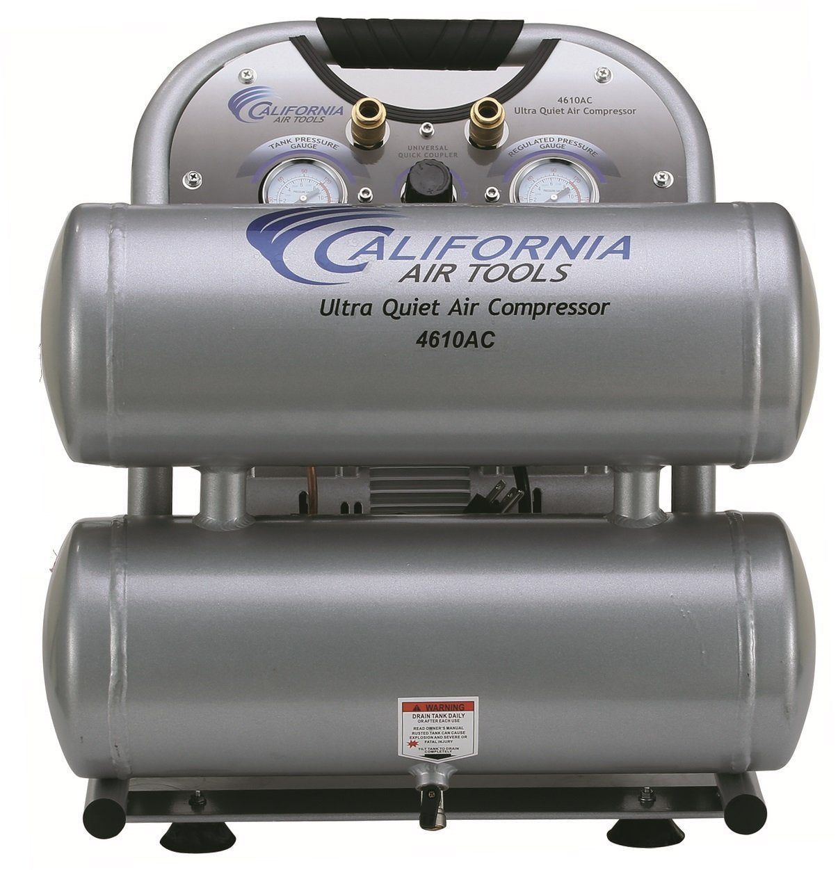 California Air Tools CAT-4610AC Ultra Quiet & Oil-Free 1.0 hp 4.6 gallon Aluminum Twin Tank Electric Portable Air Compressor, Silver