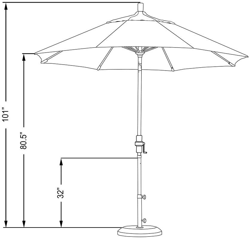 California Umbrella for Home, is a celebration of the outdoors. Designed for convenience, value, and performance, these shade products bring the full weight of our design experience to your table. Being a California company, born and bred, for 65 years, we have our share of long summer days. The California Umbrella trademark is immediately recognized for its standard in engineering and innovation among all brands in the United States. As a leader in the industry, they strive to provide you with products and service that will satisfy even the most demanding consumers. Their umbrellas are constructed to give consumers many years of pleasure. Their canopy designs are limited only by the imagination. Expertly designed and detailed, this deluxe automatic collar tilt market umbrella eliminates the need for a cord to enable the tilting operation. The enhanced counterbalance mechanism is within reach and works easily to tilt the umbrella at desired angles. The umbrella is comprised of a high impact runner, notch and cap to ensure maximum durability. Not only will this umbrella withstand weathering, but create a radiant atmosphere outdoors. This umbrella is made of Pacifica fabric. Pacifica fabric is a solution dyed polyester perfected for use with our umbrellas. Base is not included and must be purchased separately.