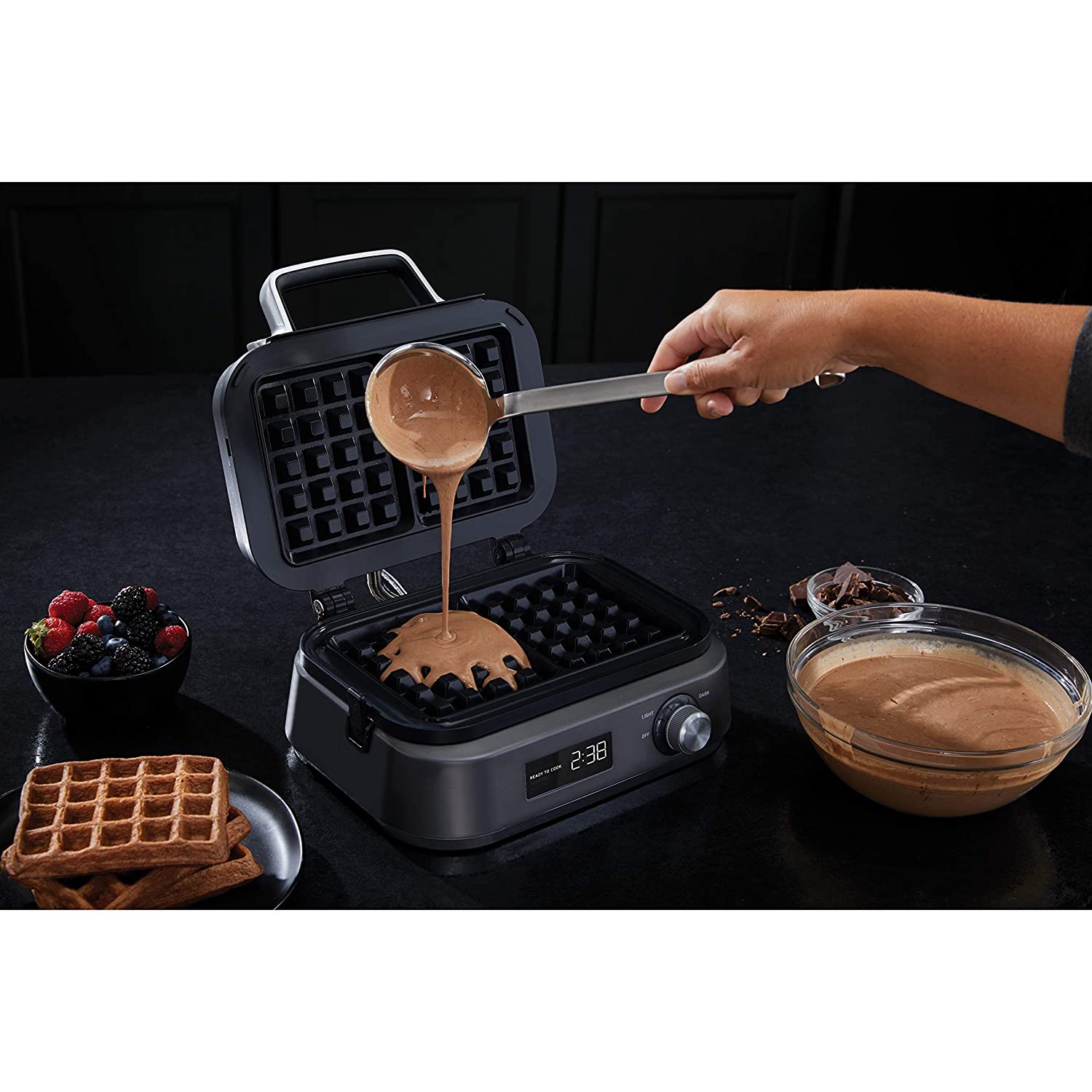 - Ceramic-coated cooking plates deliver 20% more even heat* for crisp, fluffy waffles (*compared to standard nonstick)