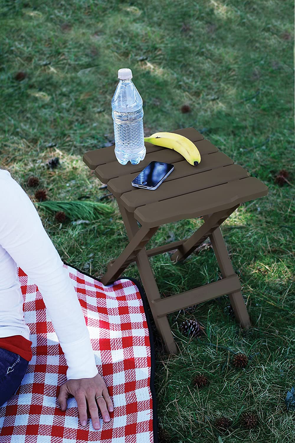 This lightweight, easy to set up and easy to store Adirondack table creates a convenient table top in any situation. A perfect addition to your campsite, patio, pool or home, this tabletop is great for anything you can think of. Use it as a side table for drinks, snacks and keys, as a footrest, as a dinner table for one or as extra countertop space—the possibilities are endless. When folded it measures 20.8" x 12" x 2". When unfolded the table top measures 12" x 14" and has a height of 15".