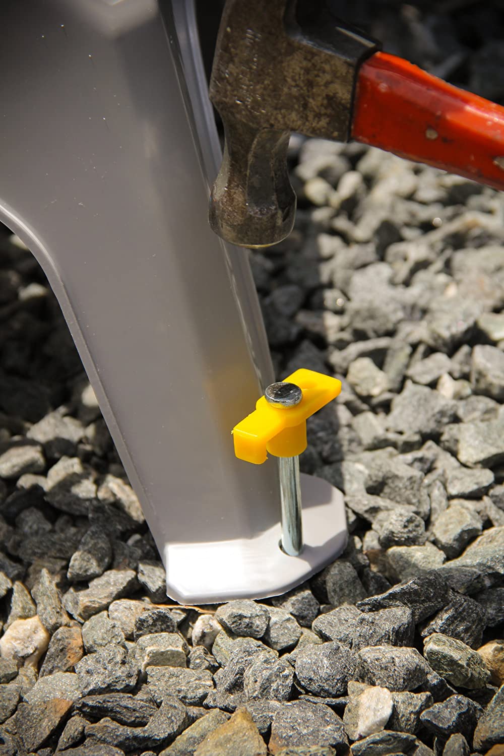 - Place stakes (SOLD SEPERATELY) into the holes at the base of the legs for added stability