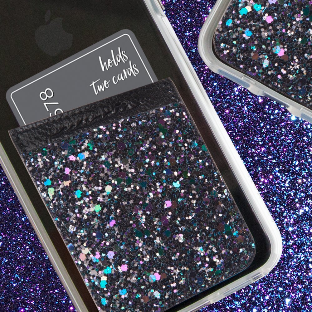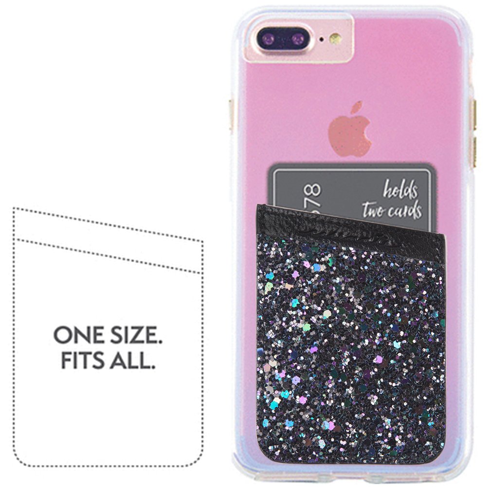 Case-Mate - Stick On Credit Card Wallet - POCKETS - Ultra-slim Card Holder - Universal fit - Apple – iPhone – Samsung – Galaxy - and more – Black Iridescent Glitter