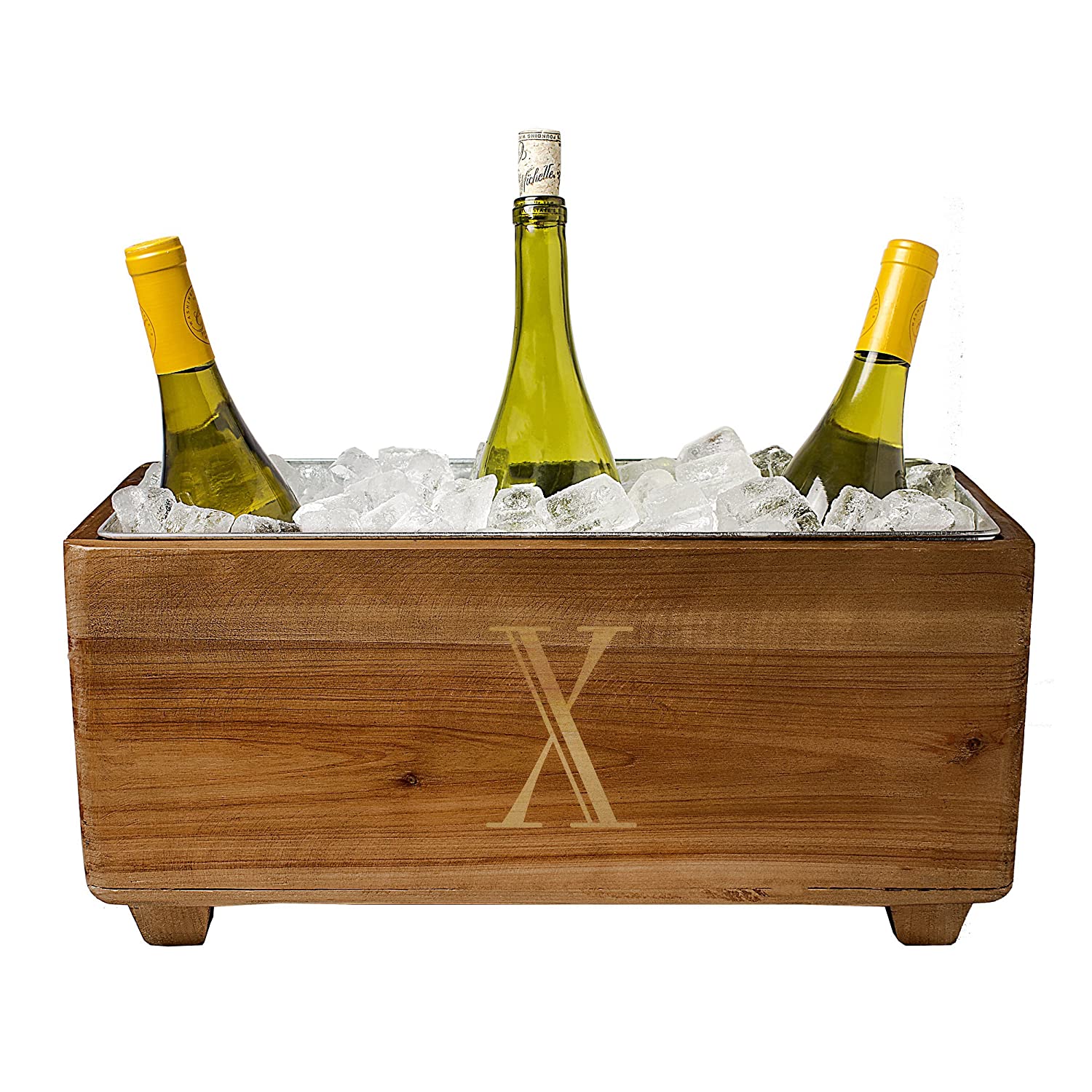 The combination of rustic wood and galvanized metal is exquisite on the Personalized Wooden Wine Trough. An ice bucket perfect for entertaining, the rustic wine cooler is fashioned from fir wood and features a removable, galvanized metal bucket inside to keep ice from melting quickly, and free personalization. An essential wine accessory everyone will love to receive.
