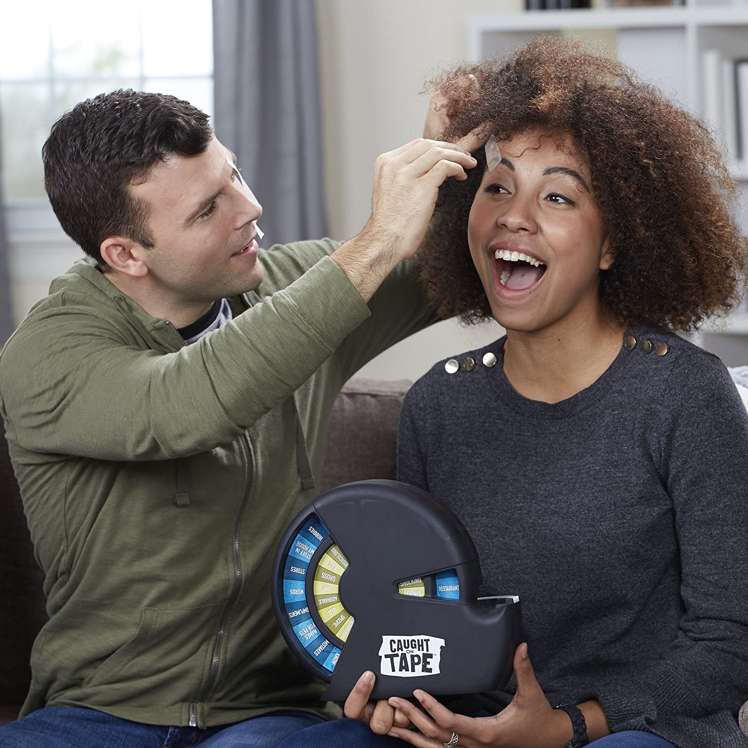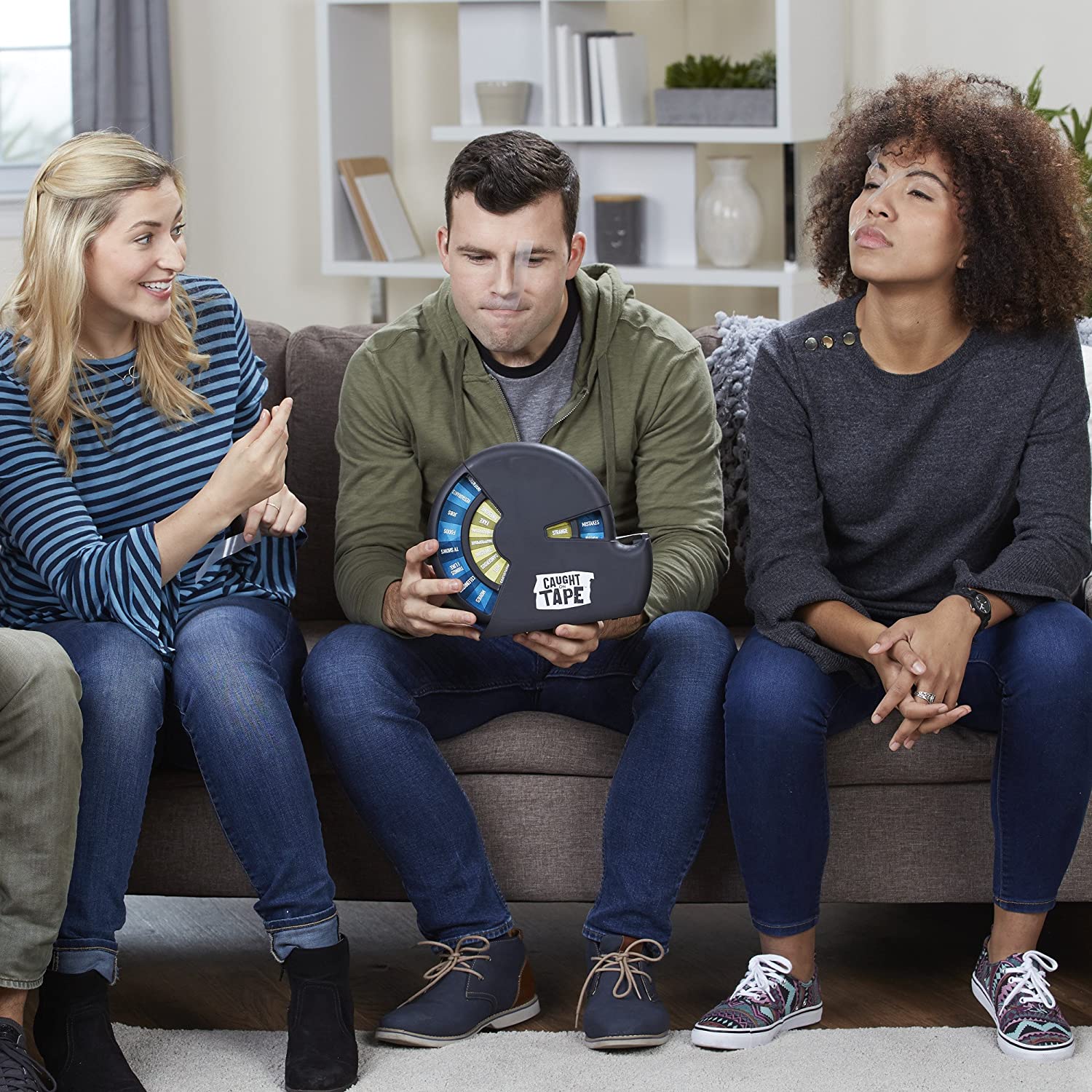 Try not to get caught up in a sticky situation! The Caught on Tape game is a hilarious, laugh-out-loud game that’s not about winning – it's about not losing! Pull a piece of tape to spin the randomizer, which will combine two words into a unique category for the round. Players then take turns, quickly shouting out terms that fit within that category. The challenge might be to name irritating celebrities, or embarrassing hobbies, but if players draw a blank or take too long to answer, their opponents get to place a piece of tape on their face! Get ready for loads of laughs as players get stretched lips and wacky eyebrows. The first player with 5 pieces of tape on their face loses the game!