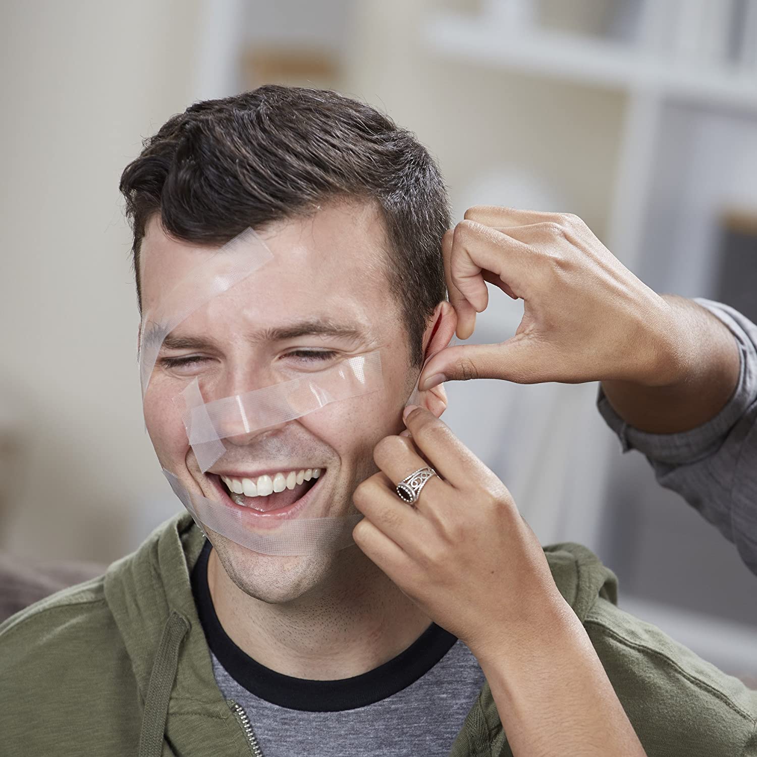 • The first player with 5 pieces of tape on their face loses