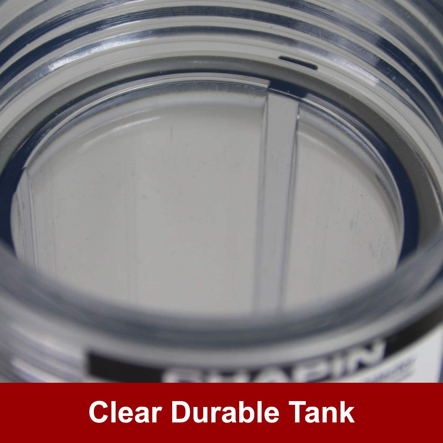 - 32-Ounce clear tank with funnel-shaped head for easy filling and monitoring usage