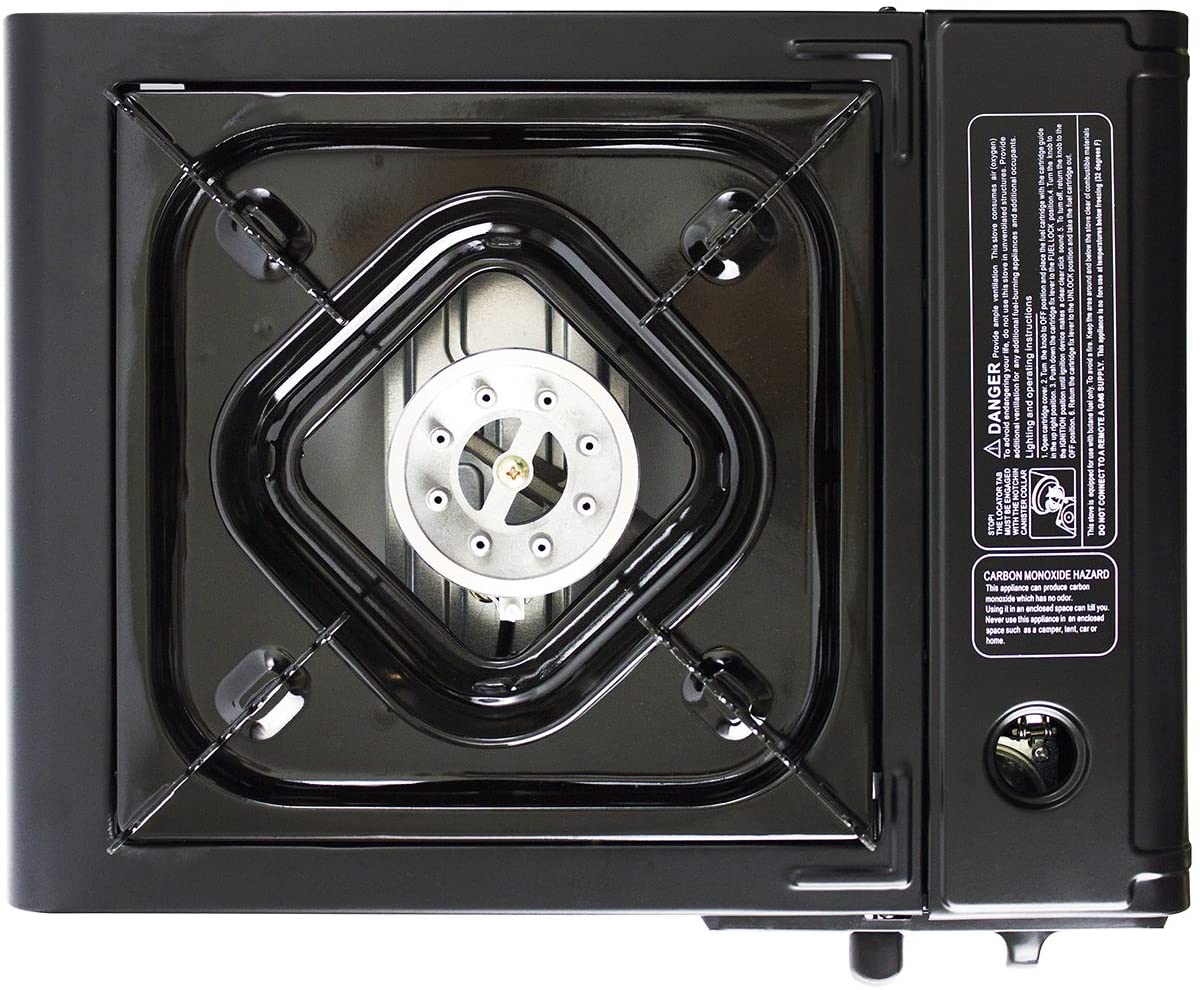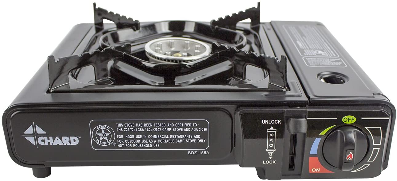 The CHARD Single Burner Butane Camp Stove is the perfect tool for on-the-go outdoor cooking. Portable and reliable, this camp stove is great for tailgating, camping and hiking. This stove features a butane cartridge locking system and safety shut off system. The Piezo-electric starter and fully adjustable heat-control dial ignites and regulates the flame. The burner provides an 8,500 BTU flame and the cooking area allows for one 10 Inch pan. Includes a portable carrying case with convenient canister storage. The stove surface and drip tray are enamel to ensure easy clean up. CSA Approved. For outdoor use only. CHARD Products put you in control with a little help from the right tools. From meat processing, to outdoor cooking, to simple food preparation, we help you Make It Yours.