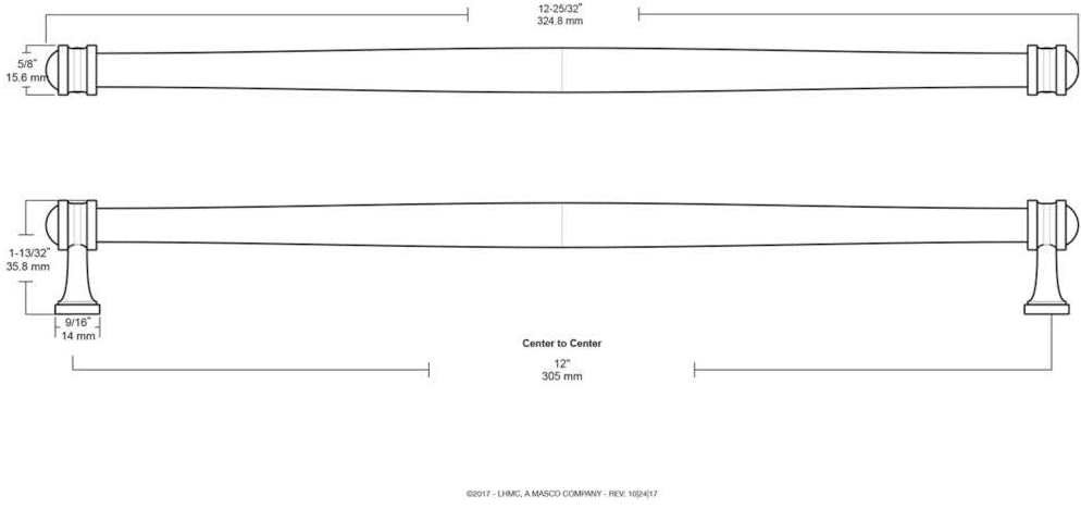 Charmaine 12 in. (305mm) Center-to-Center Venetian Bronze Appliance Drawer Pull