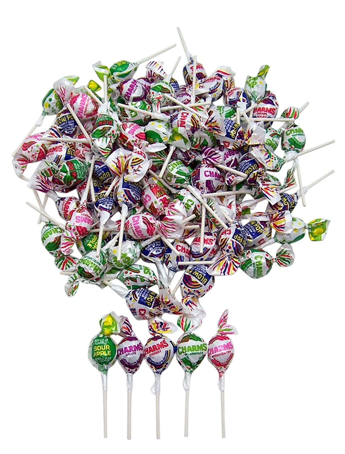 Blow Pop suckers! Bubble gum filled lollipop. Bulk individually wrapped candy! 85 suckers in one bag. Assorted candy flavored bubble gum filled pops including grape, strawberry and watermelon. Great for trick or treating Halloween candy, classroom treasure boxes and an everyday treat. Gluten free and peanut free treat.