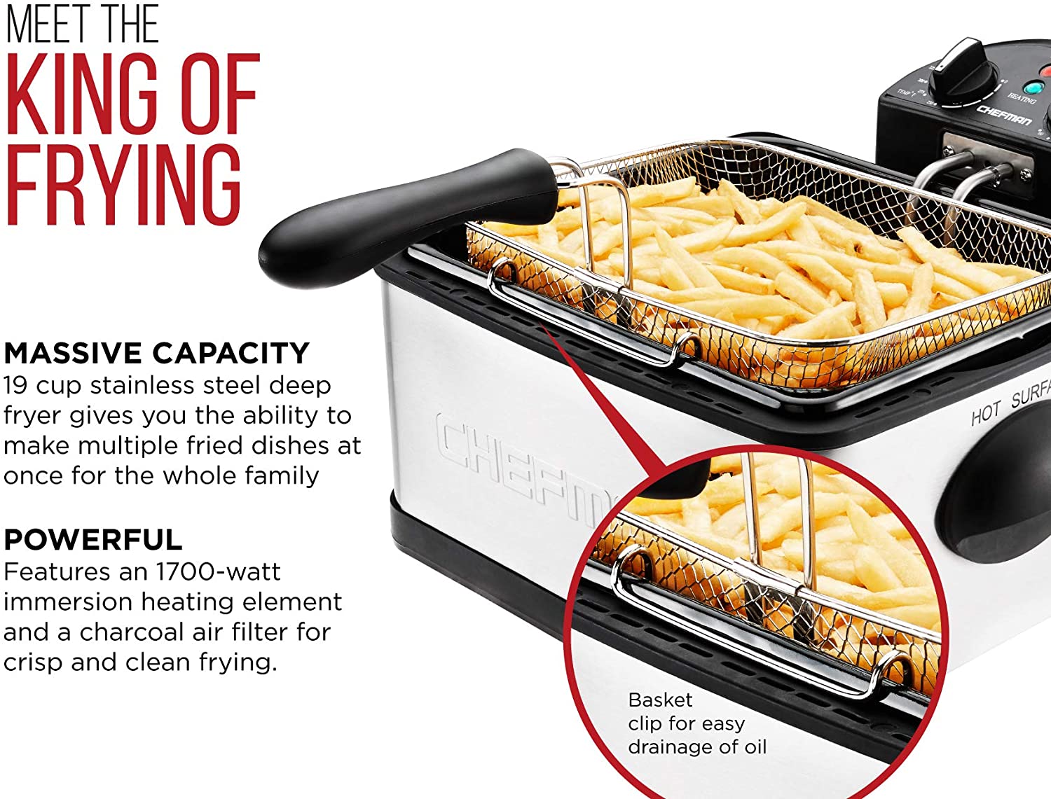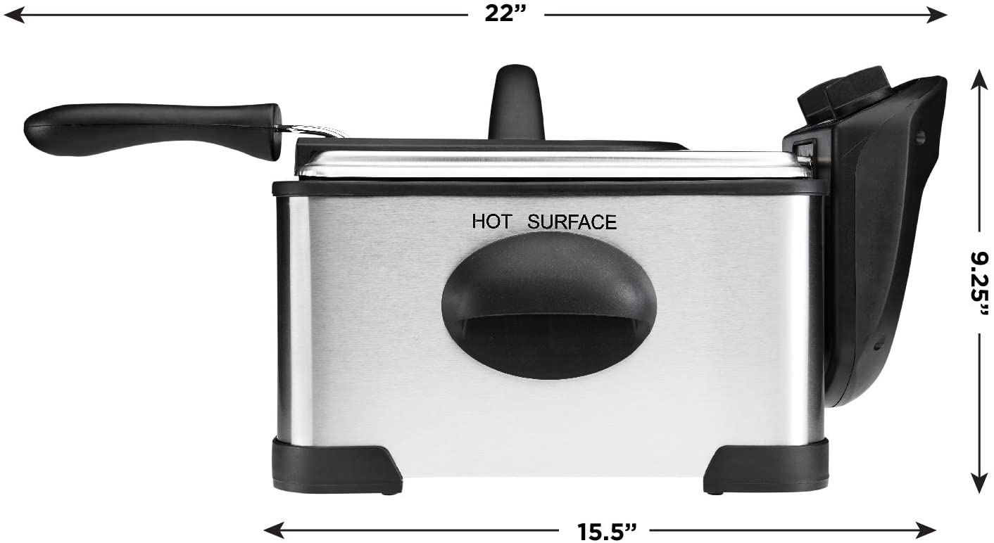 - MESS-FREE MEALS: Frying foods at home no longer means a splattered mess and lingering oily smell. With this fryer, the frying basket clips to the side so oil can drain easily. Plus, the basket is removable and dishwasher safe for easy clean-up.