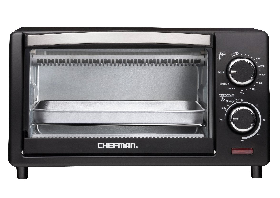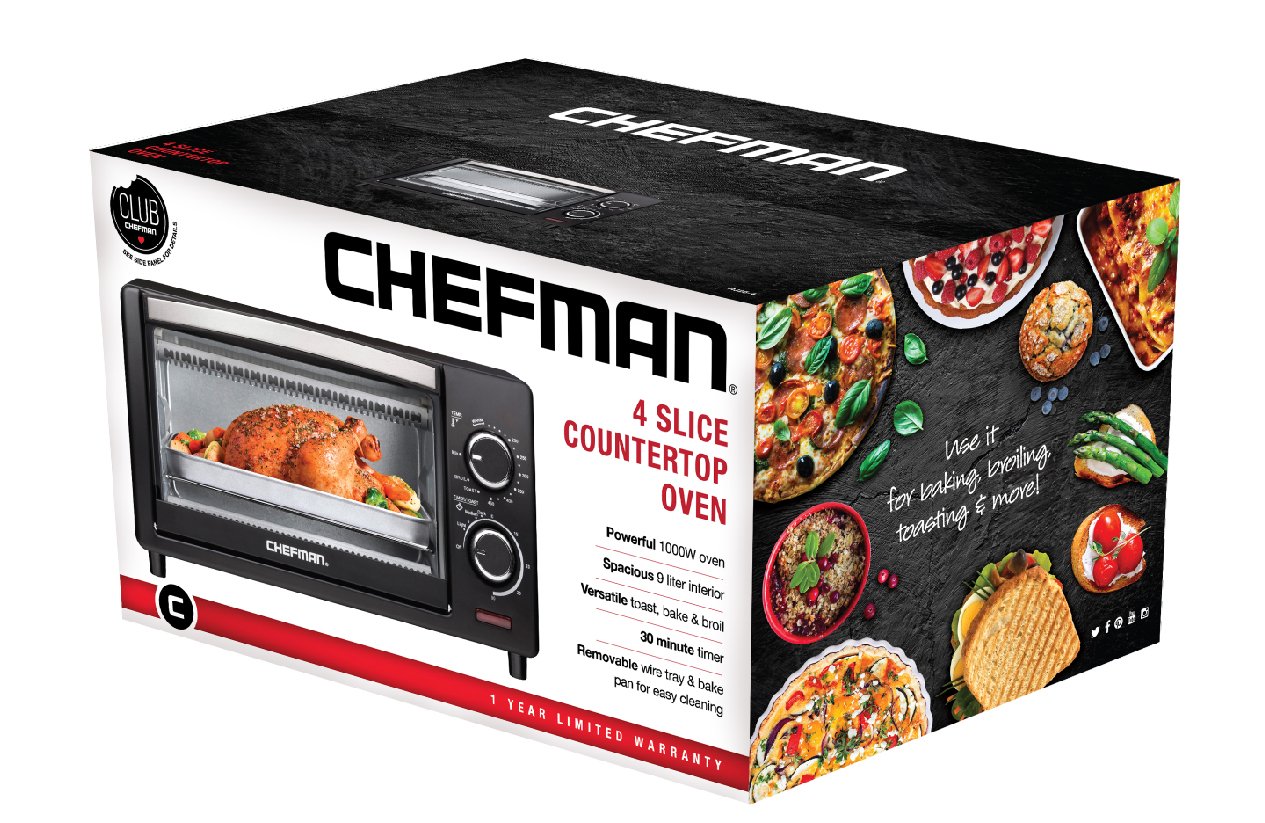 Chefman 4 Slice Countertop Toaster Oven w/ Variable Temperature Control and 30 Minute Timer; Cooking Functions to Bake, Broil, Toast, and Keep Warm - Black