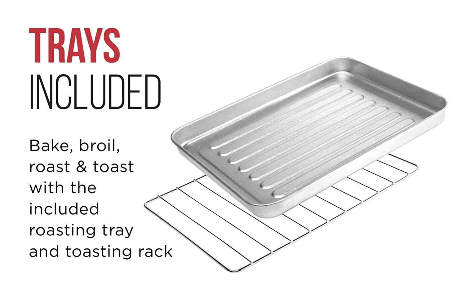 EASY CLEAN: Removable roasting tray and toasting rack are dishwasher safe for easy cleaning