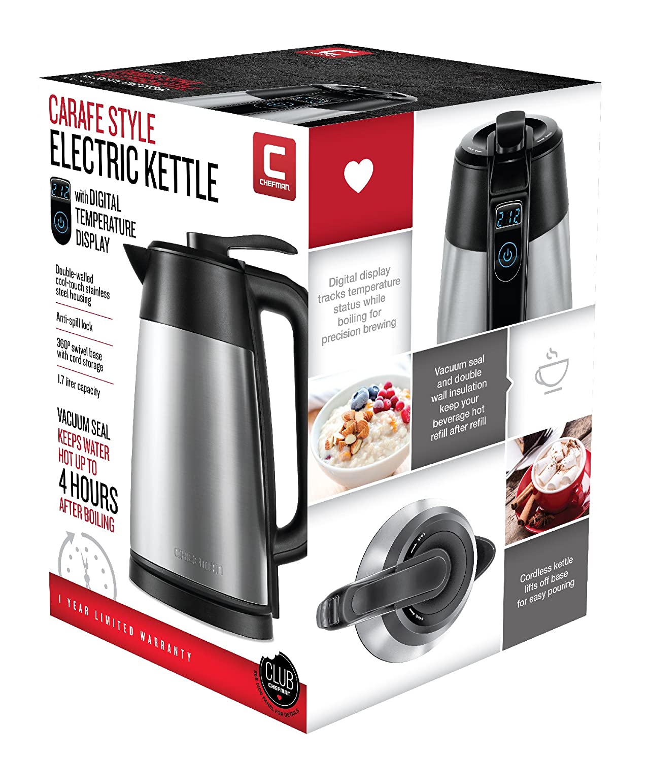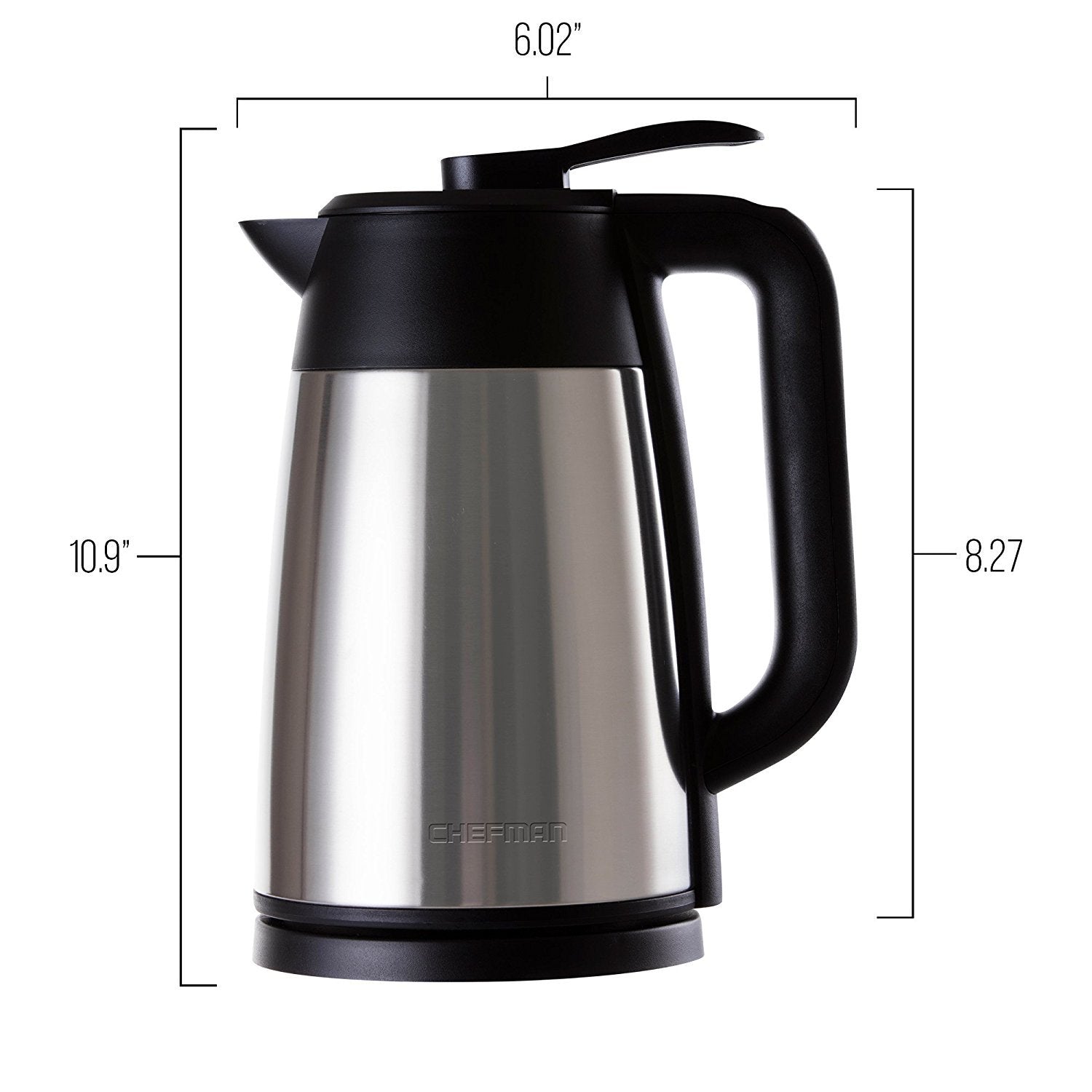Kettle + thermal carafe: the Chefman thermal tea kettle also functions as a carafe, with a 360-degree swivel base for easy removing and cordless pouring with no wires or cords in the way. Conveniently take it from the kitchen to the Table to pour easily now or later - the vacuum seal helps keeps water hot for up to 6-8 hours.