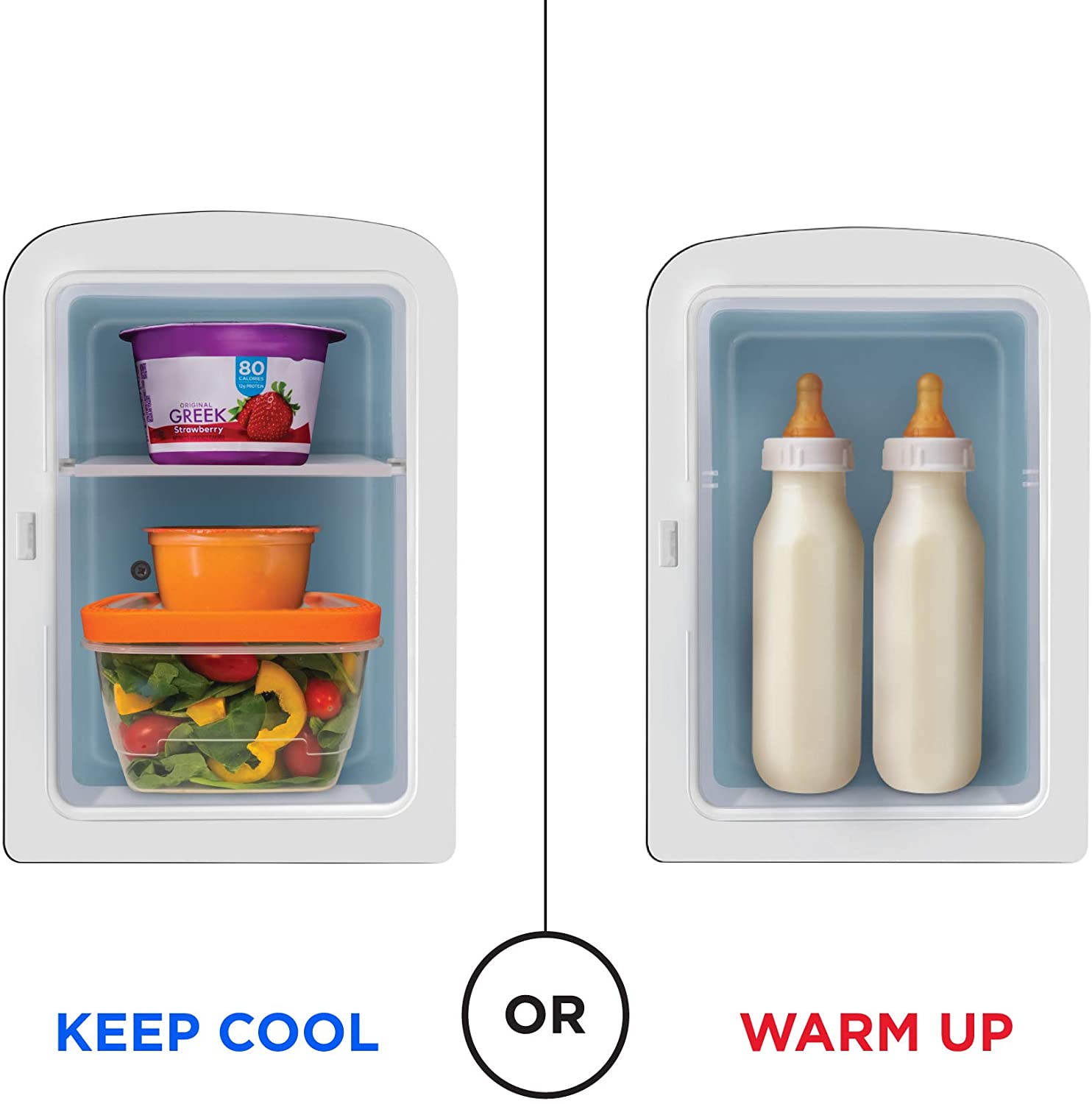 - CHILL OUT OR HEAT UP: Switch from heating to cooling at the flip of a switch. Keep your morning coffee warm or your afternoon smoothies chilled without ever leaving your desk. With 4-liter capacity, always keep up to 6 of your favorite 12 oz. canned beverages on hand