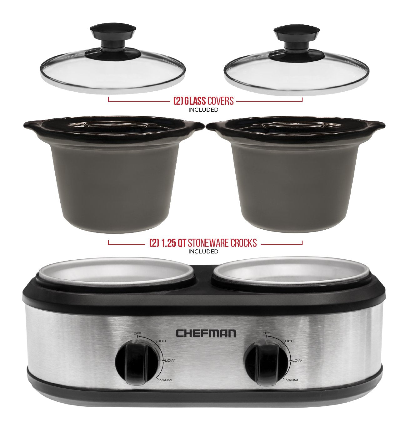 VERSATILE: With dual removable 1.25 quart crock pot inserts, it can be used to create a wide range of delicious meals, as well as double as a stylish food server and chafing dish. Each of the slow cooker crocks has an independent temperature control, making it the ideal tool for dual cooking or picky eaters. 3 heat settings, low, high and warm, provide options for a variety of dishes, dips, soups and more.
