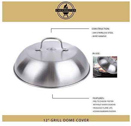 - LUSCIOUSLY DELICIOUS COOKING: The Chefmaster 9-inch Grill Dome Cover is a dynamically affordable grilling accessory that sharpens culinary skills by helping you prepare incredibly sumptuous entrées fast while reducing messy flare-ups!