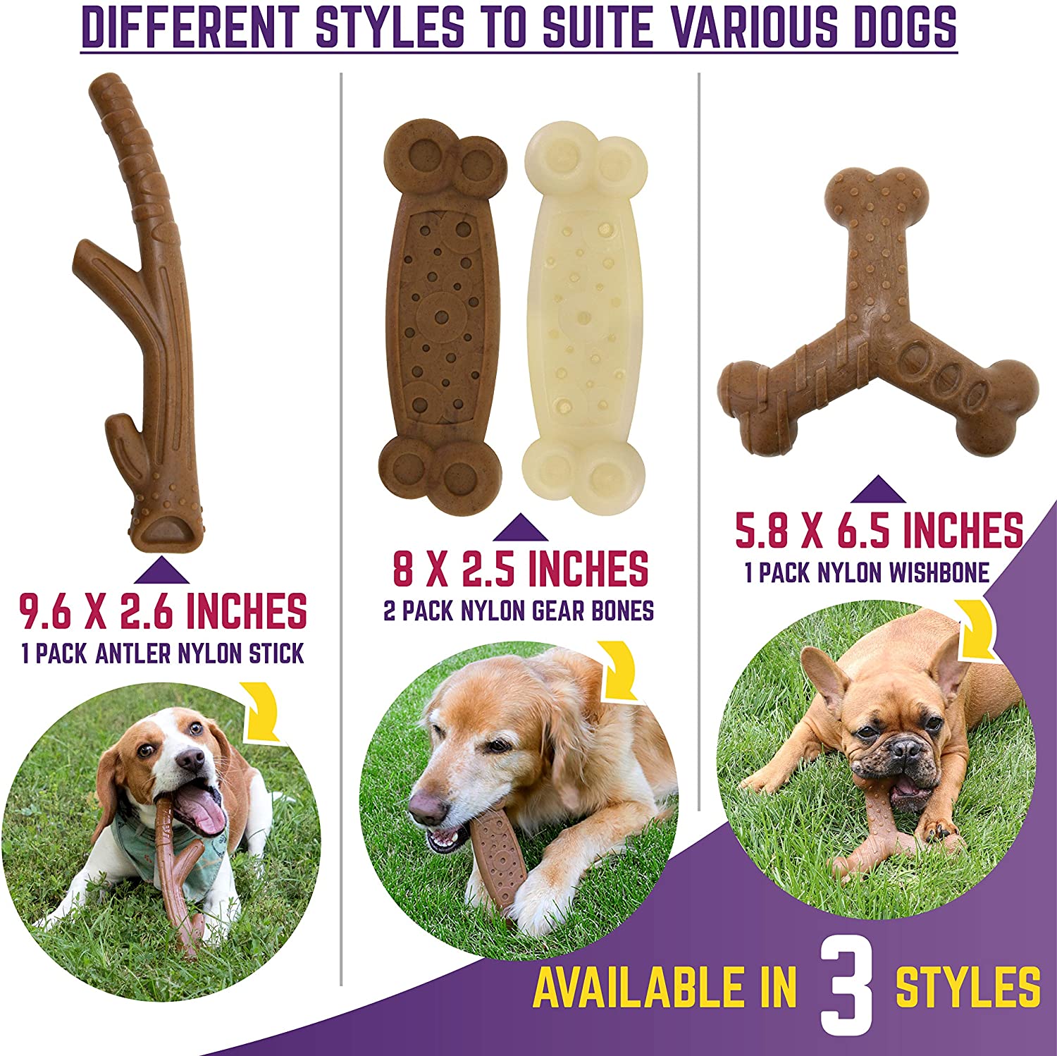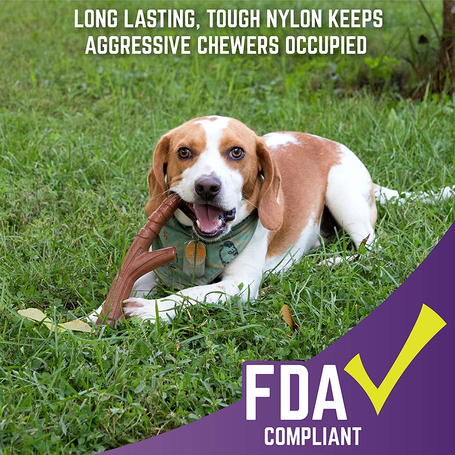 If you have any questions about our products, Our customer service department would be glad to help you. Chew King customer service can be contacted at: info@sportpet if normal nylon bones aren’t your pup’s thing, set your sights on something TASTIER. The big buck chew stick is made of 100% nylon, so it stands up to serious chomping. Better yet, it tastes like bacon – a flavor few dogs can pass up. But this antler-shaped chew stick is also good for your pet, with a textured design that reduces tartar and keeps his teeth in tip-top shape. And if you want to keep your dog REALLY entertained? Fill the divot at the bottom with a dab of peanut butter, and then watch that pooch chew happily for the rest of the afternoon. A note on nylon bones: This product is meant for chewing and small shavings are expected to be ingested. Nylon is certified completely safe for your pet, and small pieces will pass through your pet without issue. But in the interest of safety, if you think your dog for some reason swallows a large piece, discard The bone and contact your veterinarian.