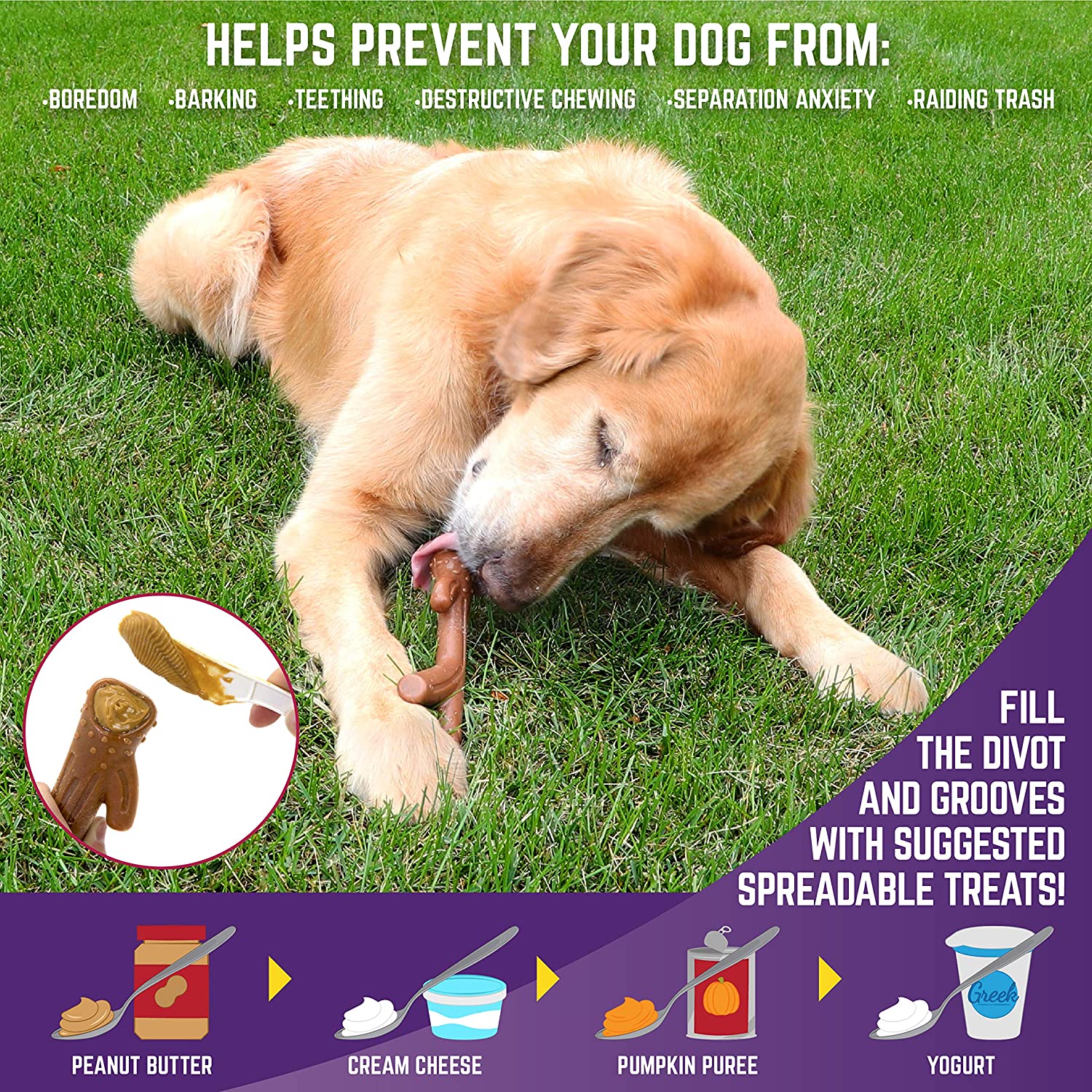 - Put a dollop of peanut butter in the bottom divot to keep your dog extra occupied