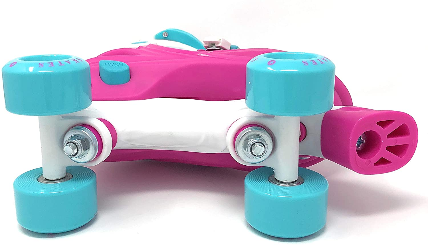 Chicago Skates Girls Adjustable Junior Quad Skates - Pink/White/Teal - Small Sizes J10-J13
