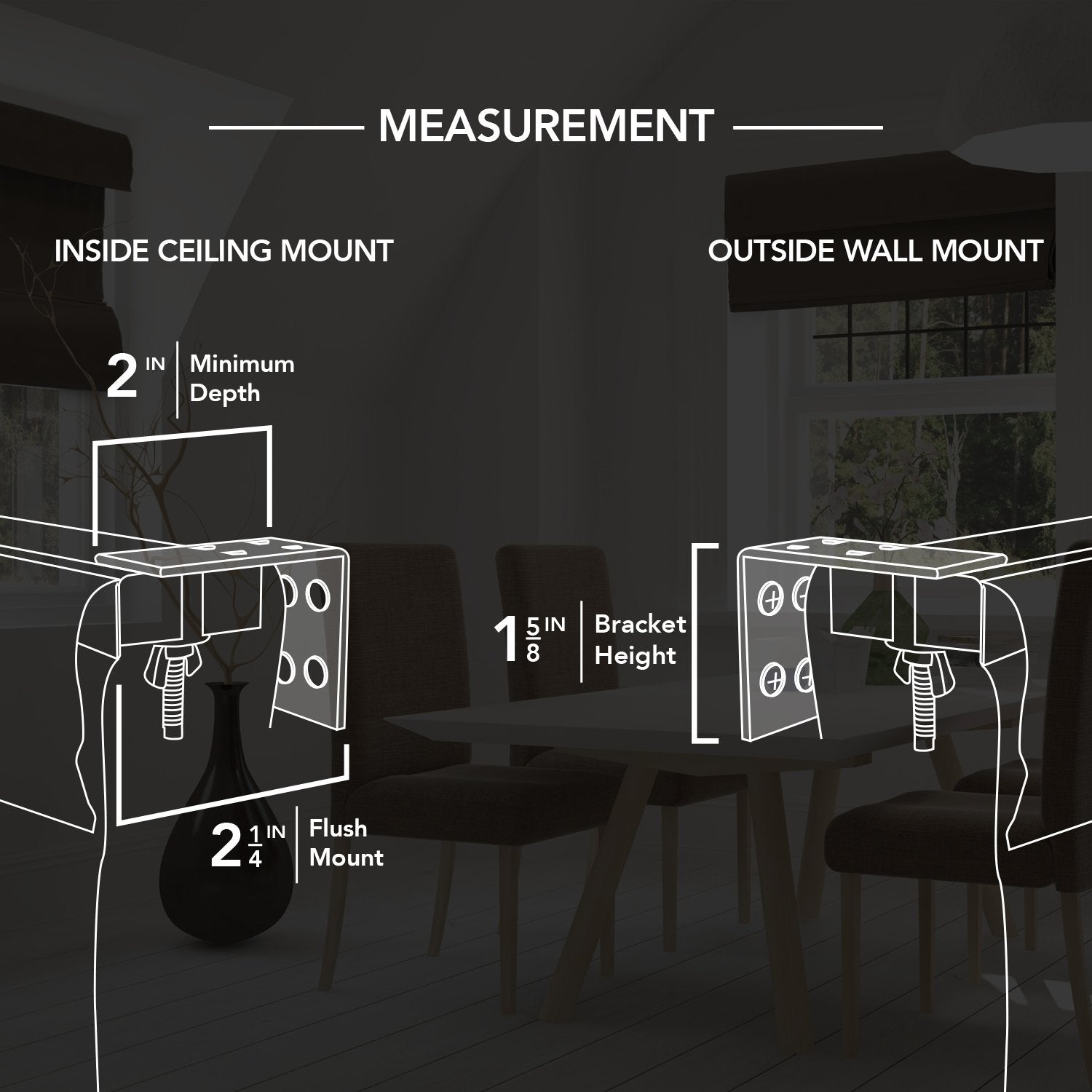 • MOUNT: Inside or outside mount (minimum 2-inch depth required for inside mount; 2.25-inch for flush inside mount)
