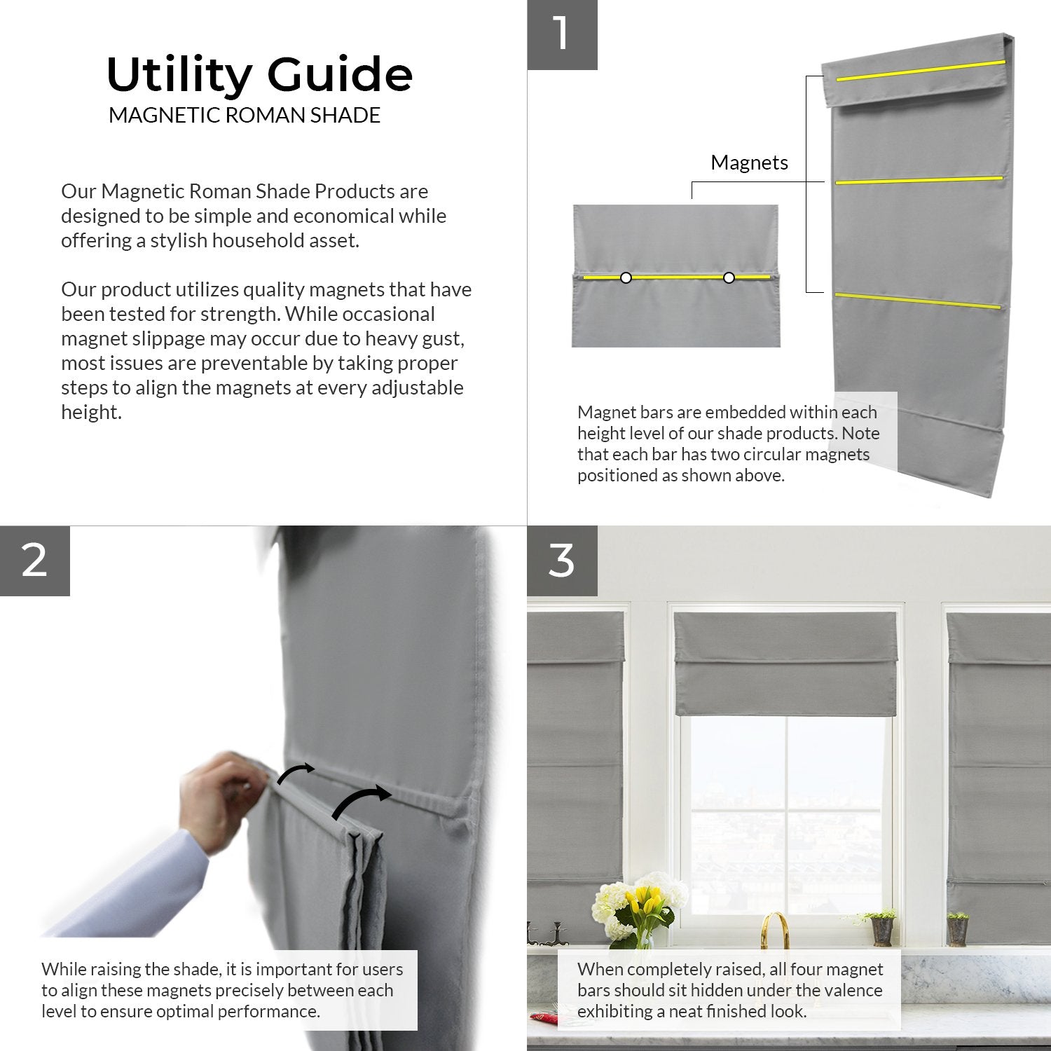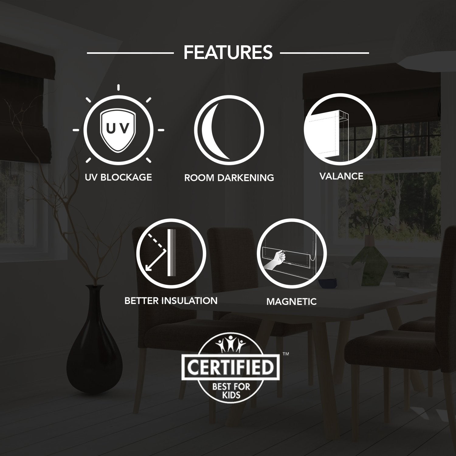 • Smart, safe, and practical - Cordless Magnetic Roman Shades elevate your décor easily and affordably (includes Valance)