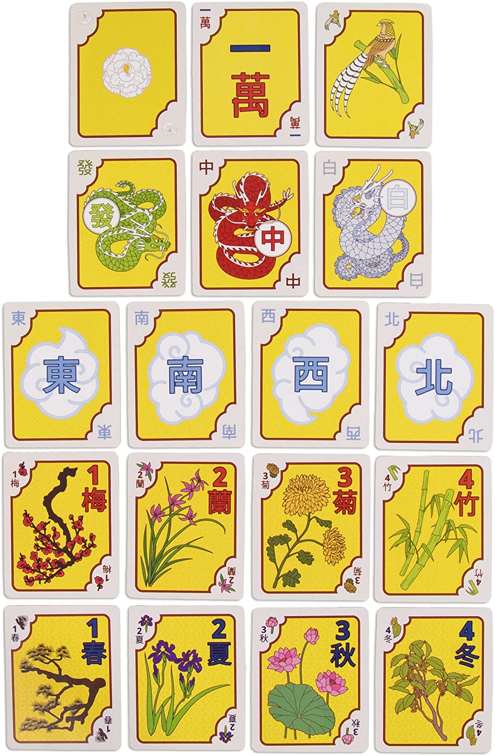 - 144 CARDS: Includes 3 Suites of 36 Circles, Characters, and Bamboo, along with 16 Winds, 12 Dragons, and 8 Flowers & Seasons
