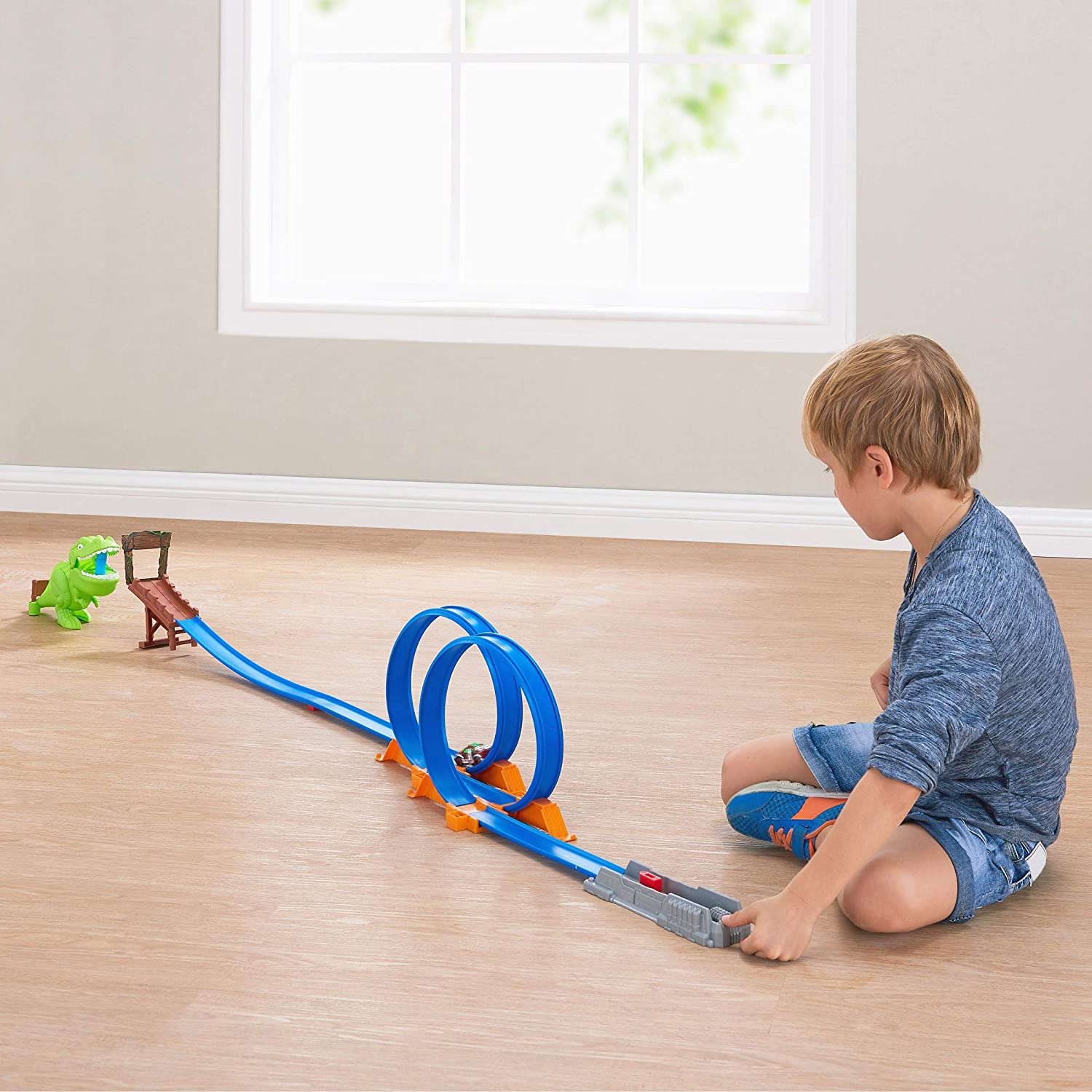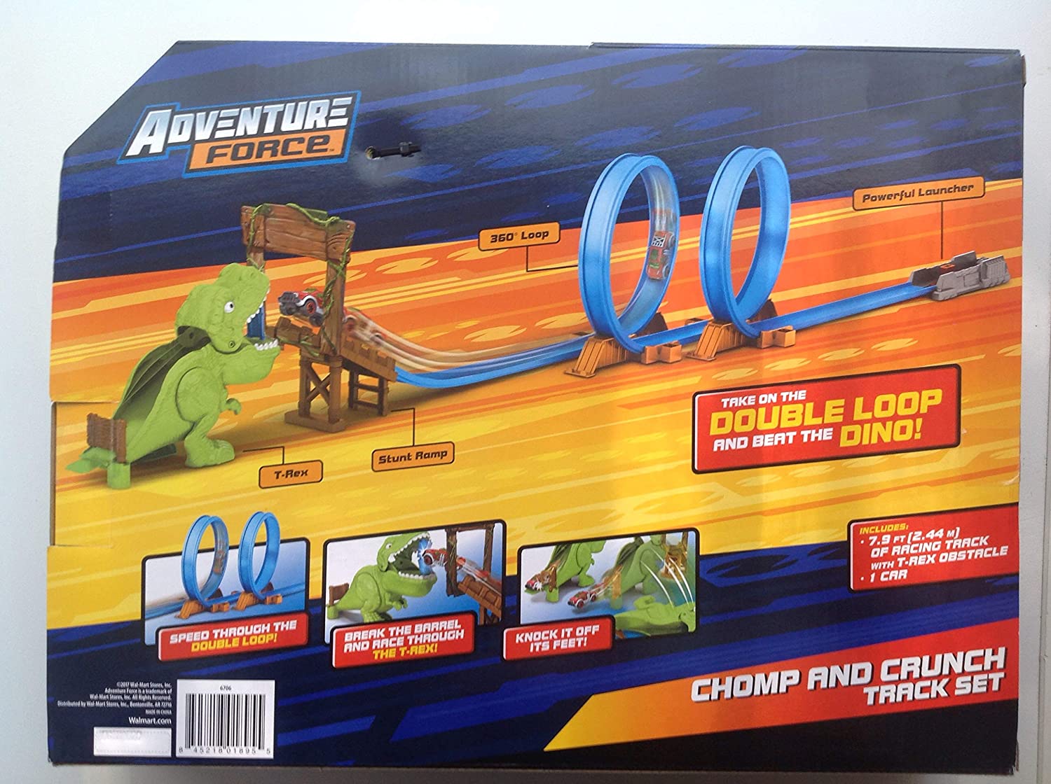 Adventure force Chomp and Crunch Track set Take on the Double Loop and beat the Dino. Includes 7.9 Ft of Racing Track Comes with T-Rex Obstacle and 1 Car. Very easy to Assemble.