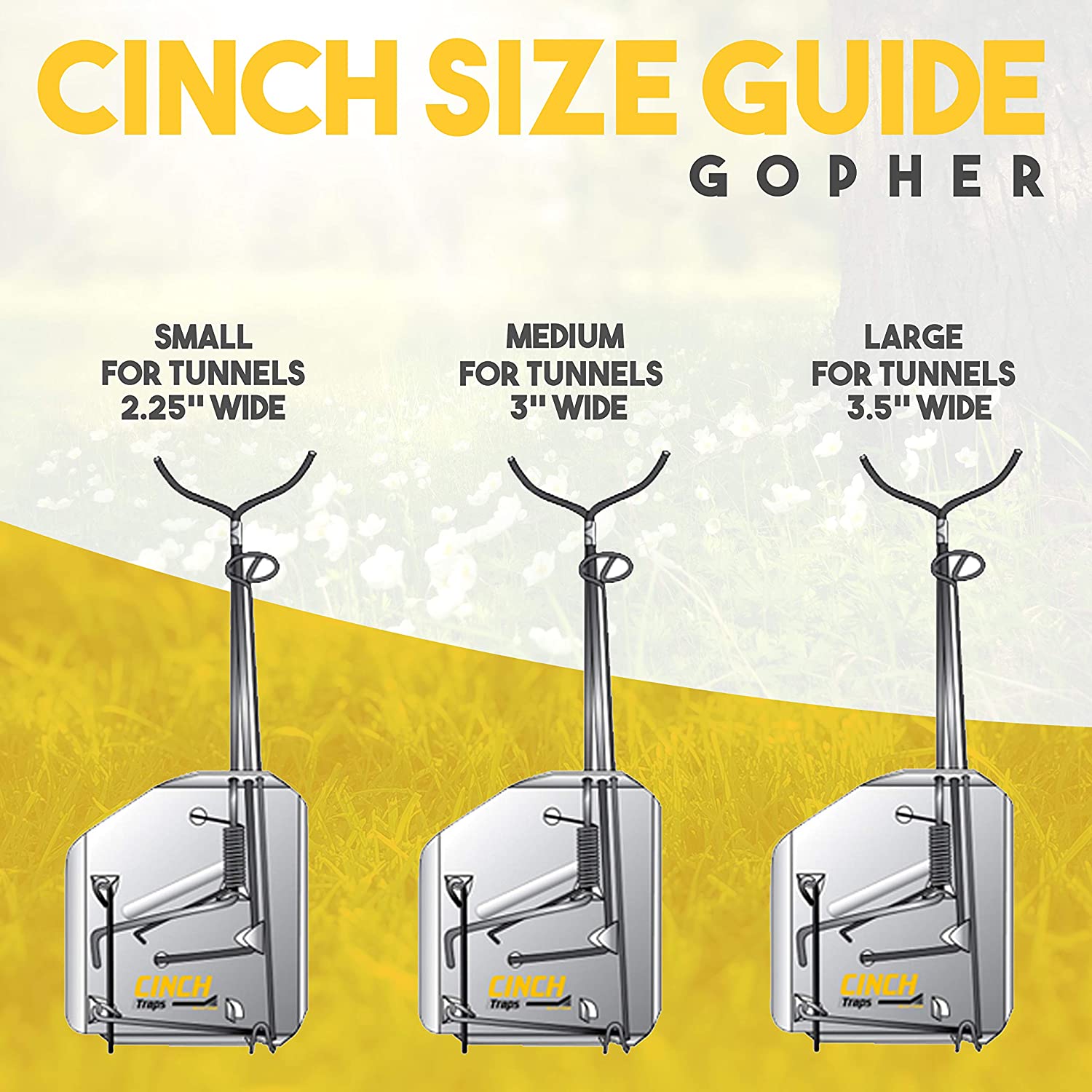 • When purchasing the right sized CINCH Traps. Easily measure the diameter of the gopher tunnel system and match this to the correct size of trap needed.