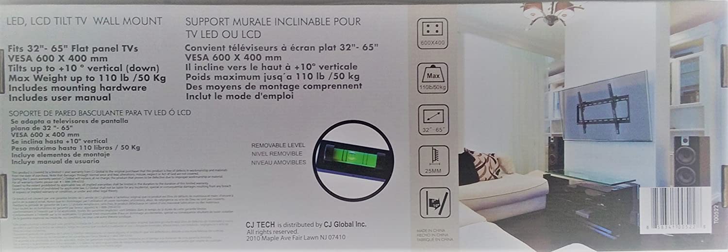 CJ Tech Tilting Television TV Wall Mount for Flat Panel 32" - 65"