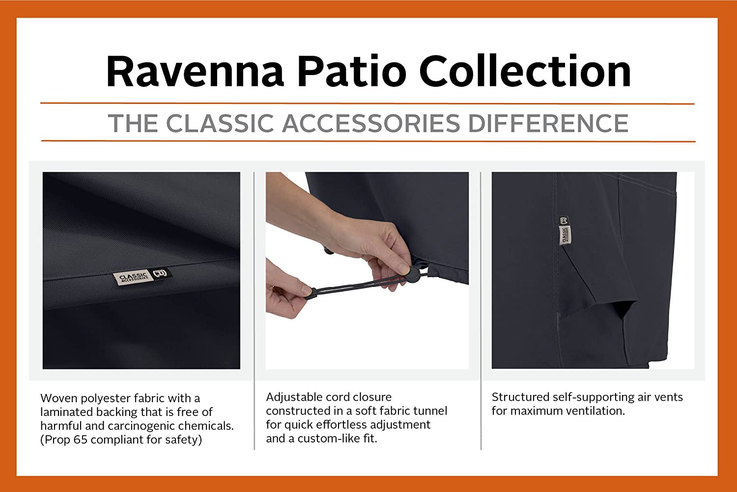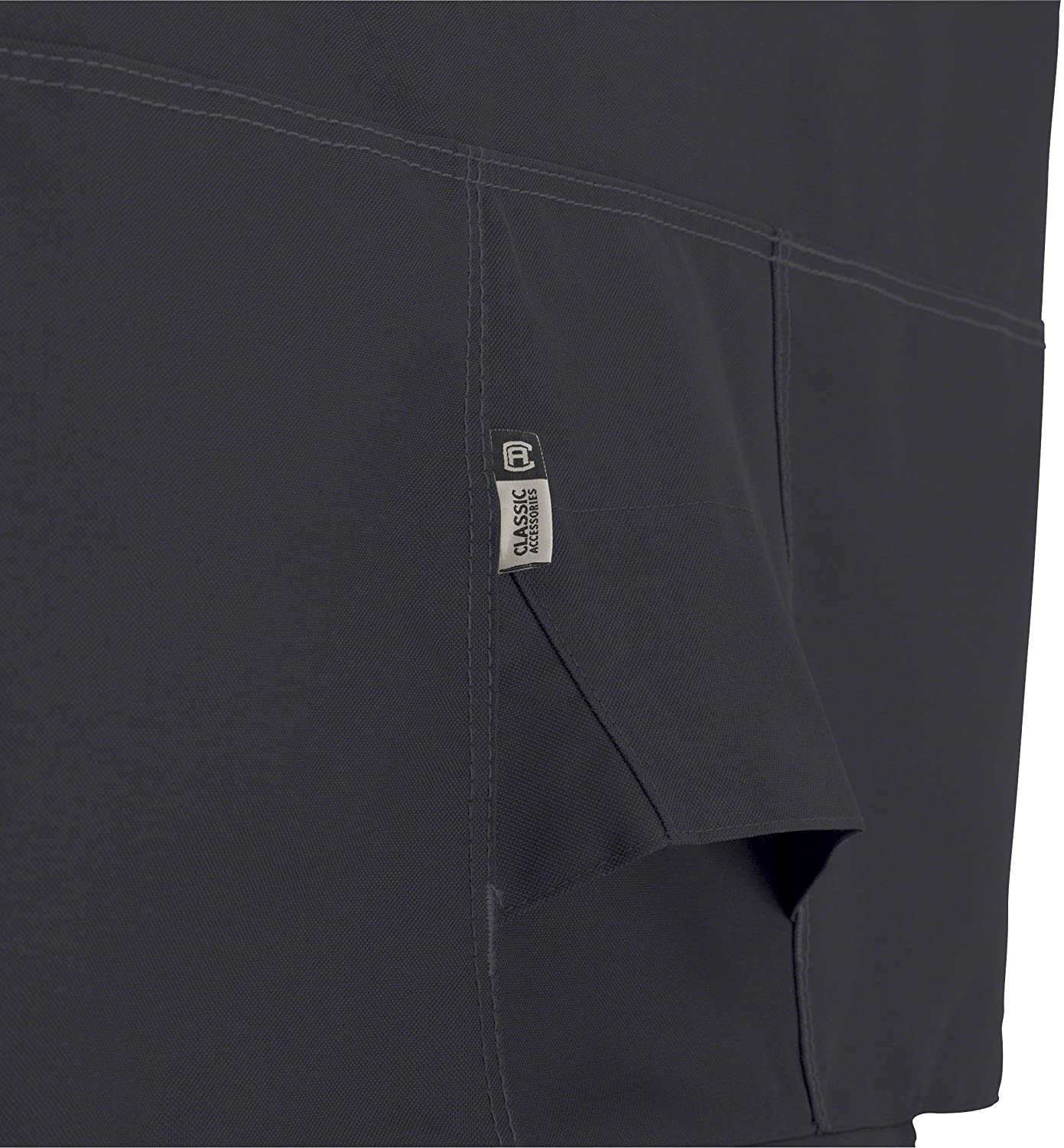 This product includes these features: Fits Grills Up To 32"L 26"D 24"H, 1 year manufacturer's warranty, Gardelle One. is a durable woven polyester fabric with an added UV-stabilized coating and a water-resistant PVC undercoating. Adjustable belted hem with 2 click-close straps delivers exceptional security in the windiest conditions. Engineered seams and double top-stitching at the most demanding joints provide strength, durability and style. Gusseted self-supporting vents keep weather out while providing maximum ventilation and minimum condensation. Reinforced padded handles provide comfort when installing and removing covers, Elastic hem cord with specially designed hem tunnels allow easy adjustment resulting in a custom-like fit.