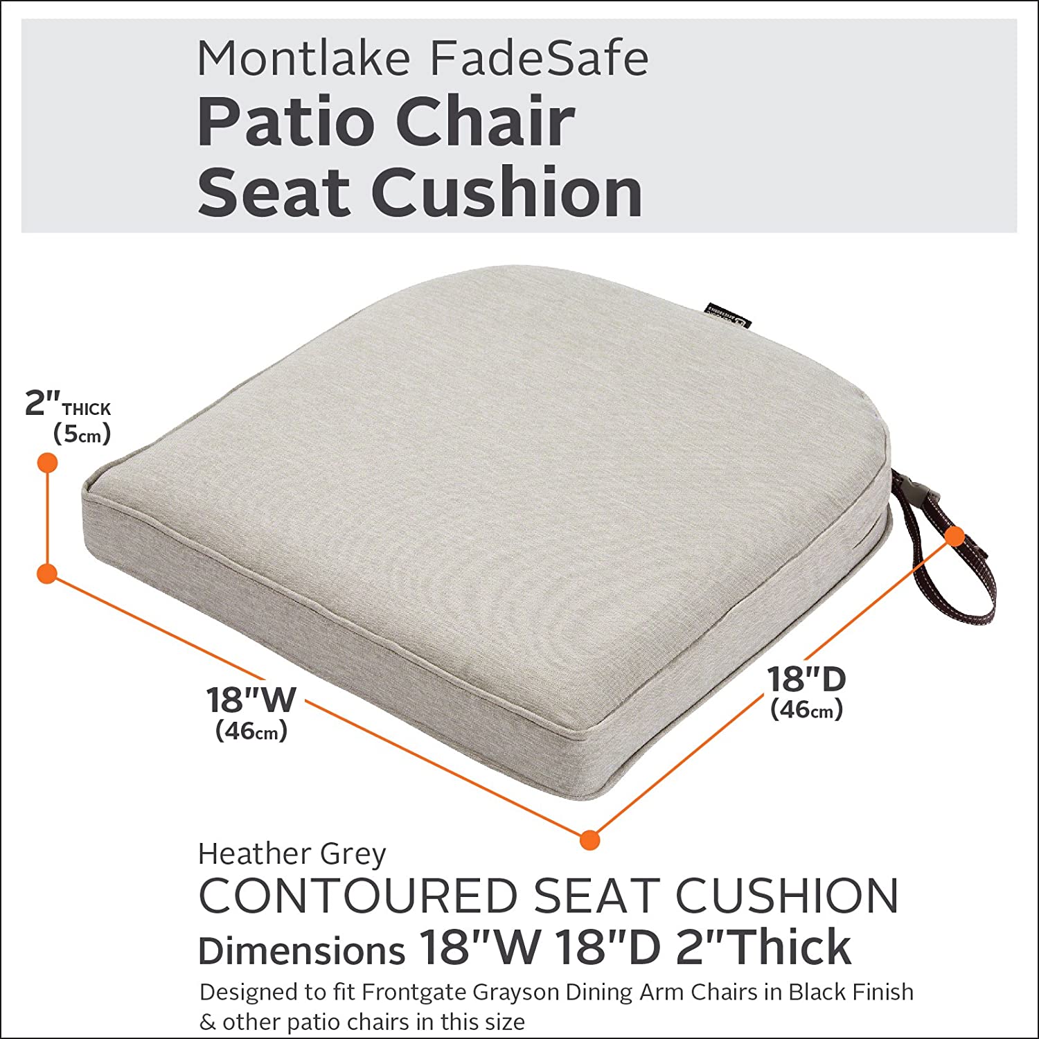 DURABLE PATIO CUSHION: Cushion measures 18"W x 18”D x 2”Thick Contoured