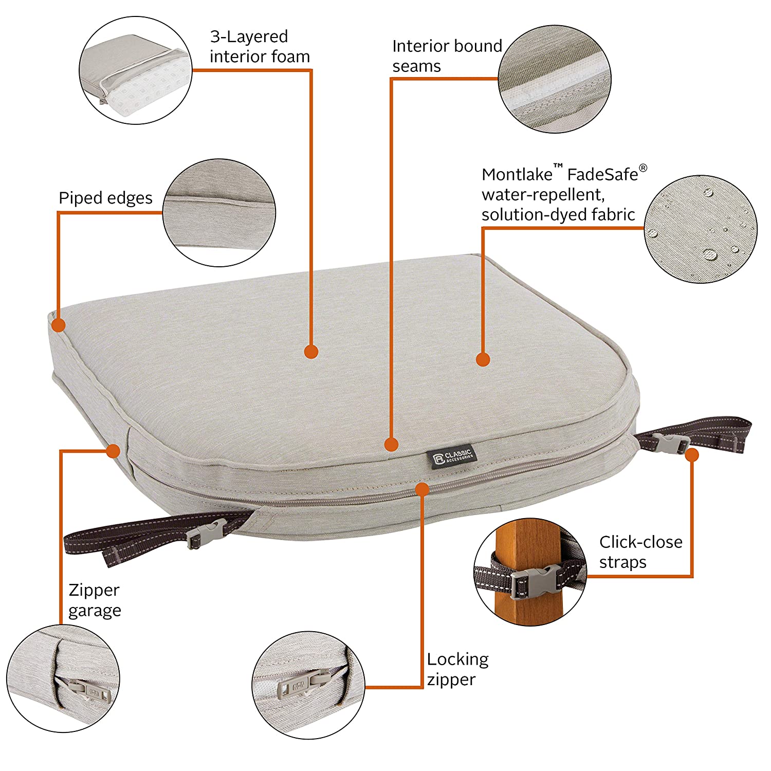 PATENTED ATTACHMENT SYSTEM: Our patented adjustable strapping system allows for easy adjustment and excellent security under all loads. These click-close straps keep your cushions exactly where you want them and also ensure that they look great on your furniture