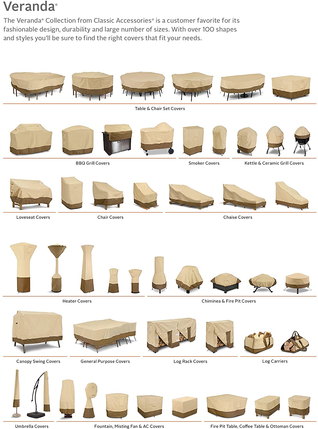 - THE CLASSIC ACCESSORIES DIFFERENCE: CA Veranda covers have interior bound seams for strength, high-density stitching for durability, padded handles for comfort, matching webbing for a great look and California Prop 65 compliance for health and safety